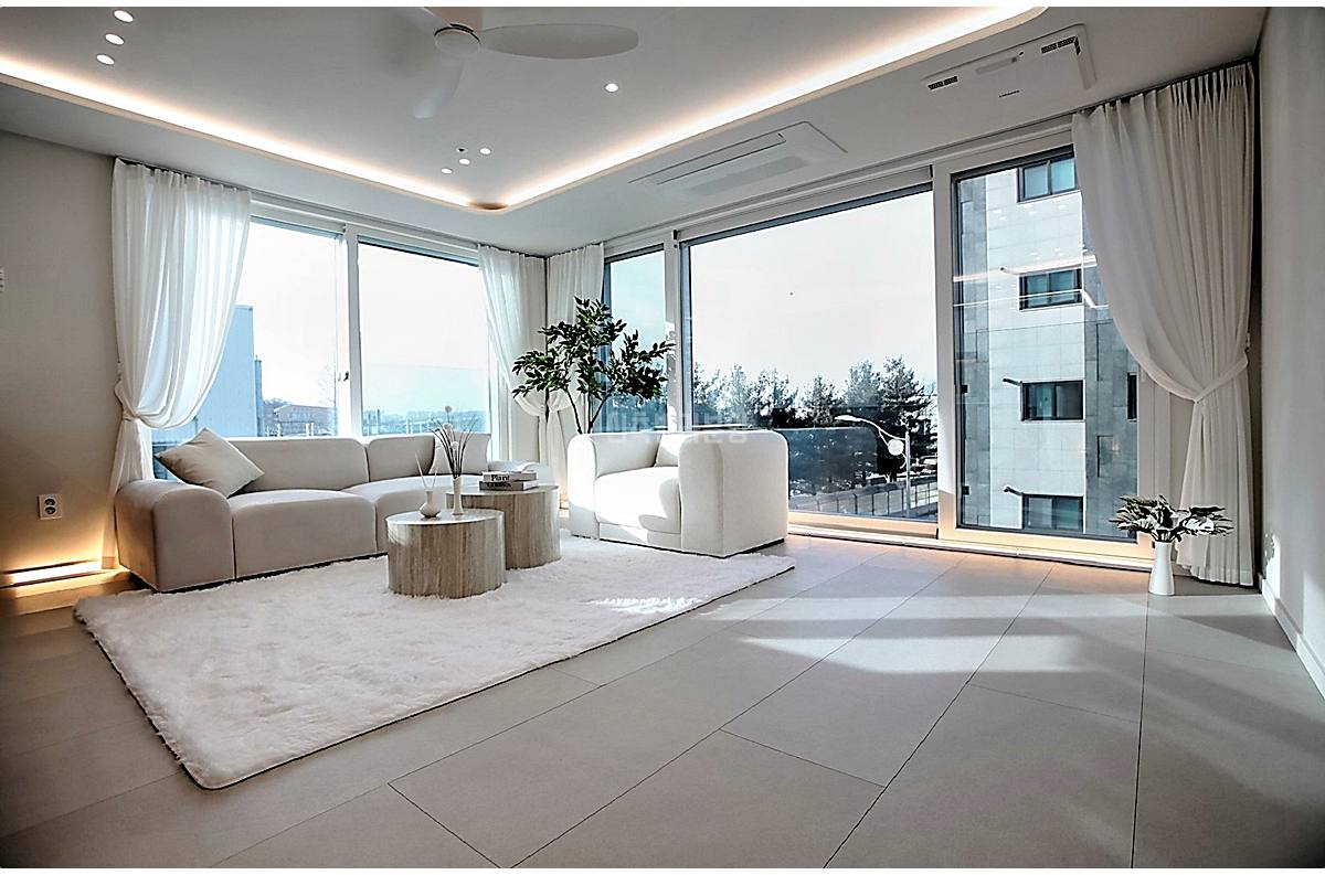 2. 양창형 거실과 실링팬으로 채광과 쾌적함을 극대화한 세련된 인테리어