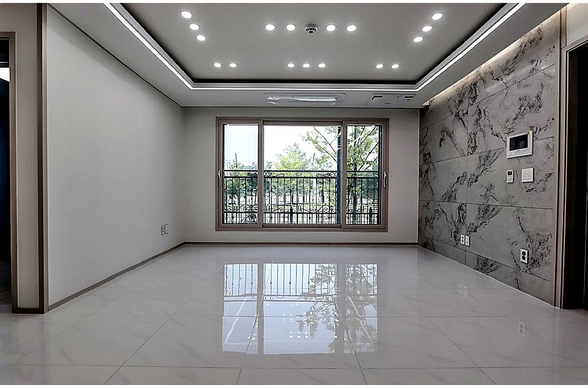 🛋️ 폴리싱 타일로 품격을 높인 4베이 거실