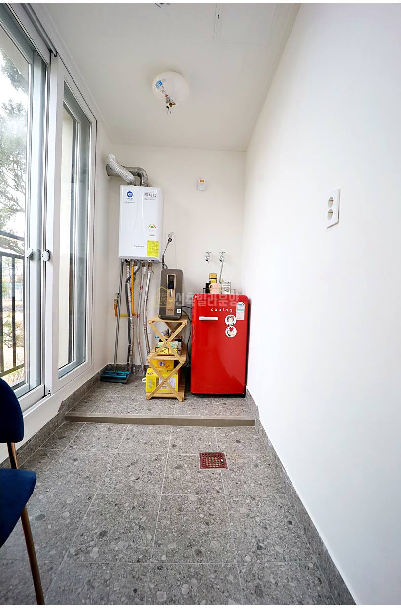 서브 욕실도 별도로 있어 아침 시간대에도 여러 가족 구성원이 동시에 사용 가능합니다. 다용도실에는 1등급 보일러와 수전이 설치되어 세탁실로 활용하기 좋으며, 화이트톤 템바보드로 깔끔하게 마감된 전실에는 3연동 중문과 수납형 신발장이 갖춰져 있습니다.