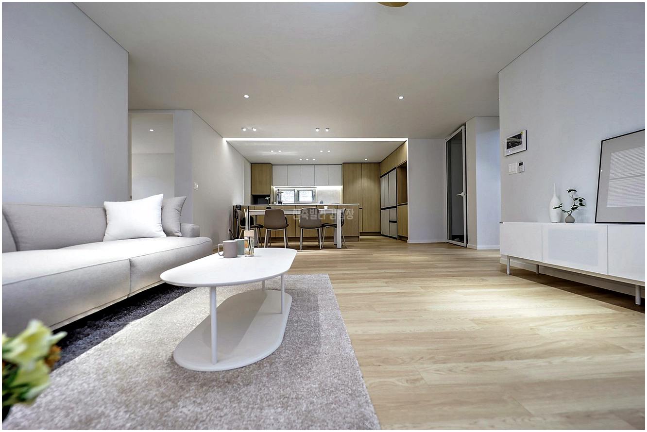 거실과 주방이 벽 없이 일자로 쭉 이어진 구조라