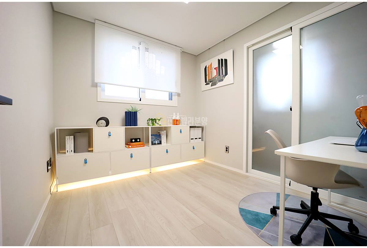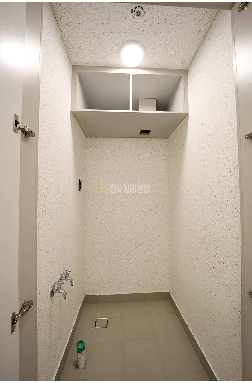고강동신축빌라 장점은 별도로 시공된 세탁실입니다. 작은방에 연결된 발코니 외에도 세탁 전용 공간이 따로 마련되어 있어, 공간을 더욱 알뜰하게 사용할 수 있습니다. 세탁기와 건조기를 배치하고도 여유가 있어 계절용품이나 생활용품을 보관하기에도 좋습니다.
