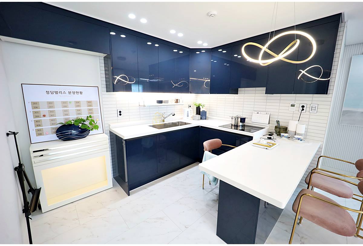 “다크 네이비 주방이 연출하는 모던한 감성”