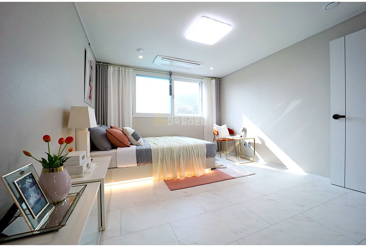 진접읍신축빌라 3개의 침실은 모두 넉넉한 크기로 설계되었습니다. 안방에는 거실과 동일한 시스템 냉방기가 설치되어 사계절 쾌적함을 유지하며, 작은방 중 하나는 다용도실과 연결되어 세탁이나 수납 공간으로 활용 가능합니다.