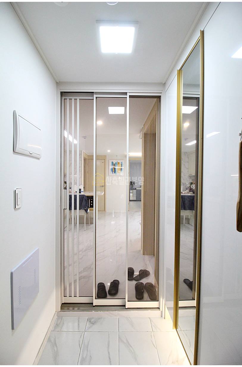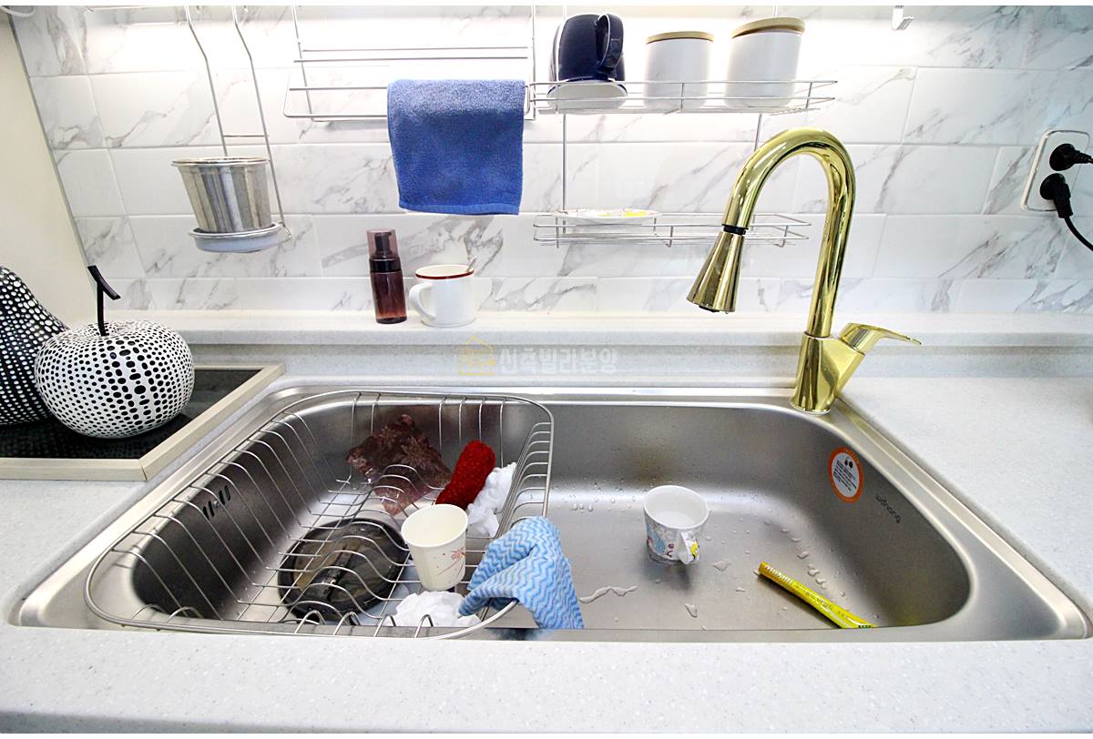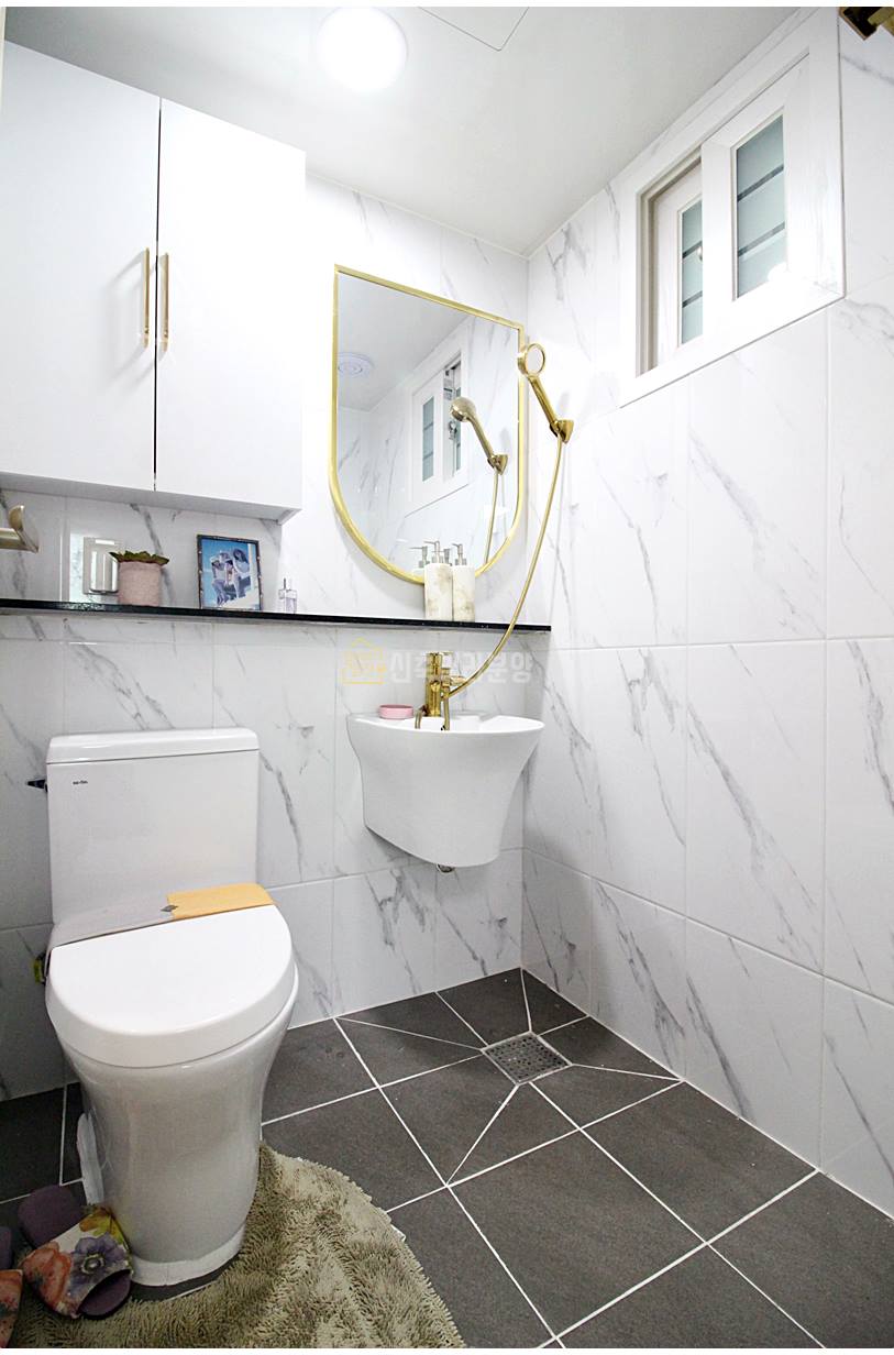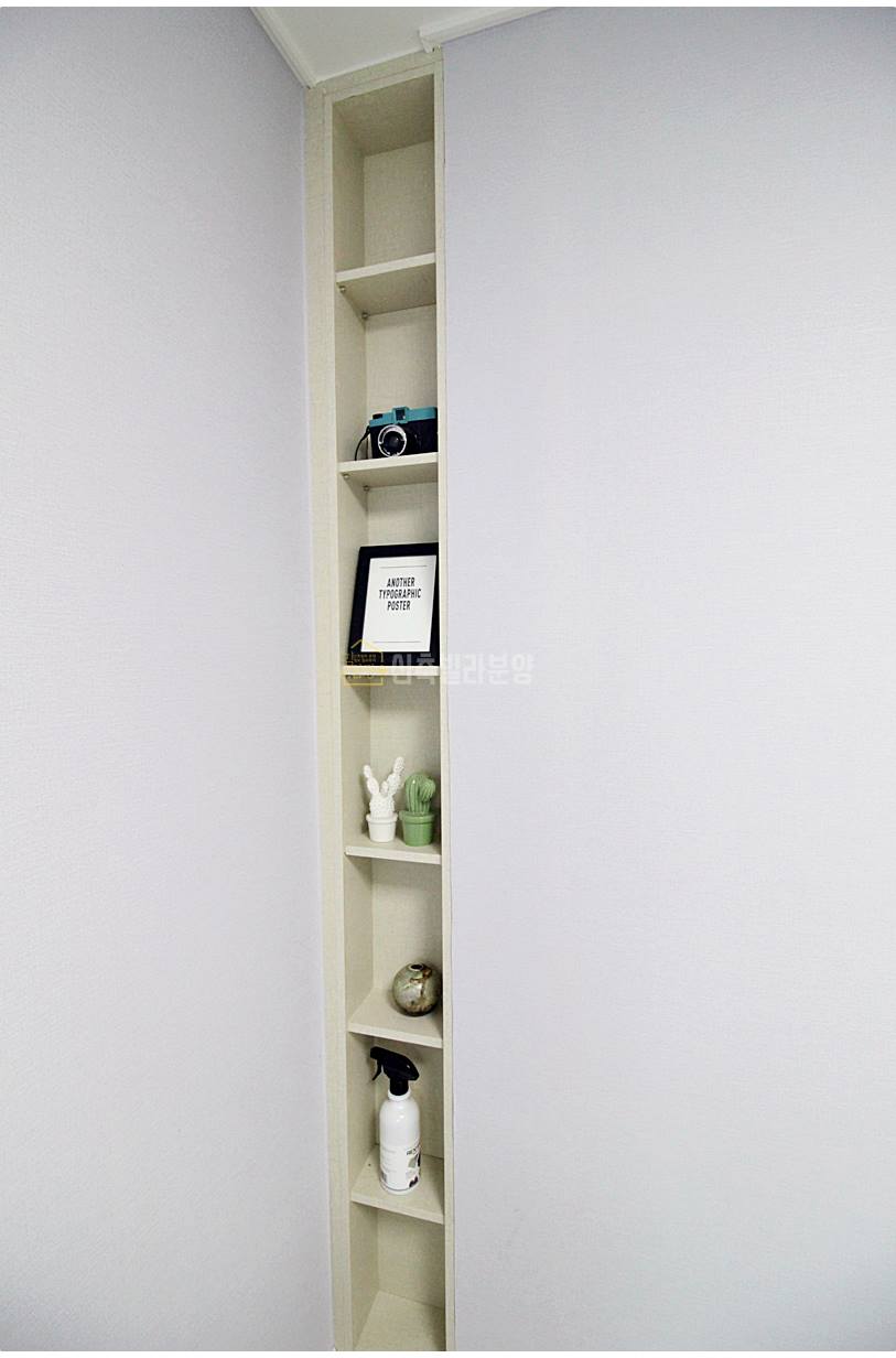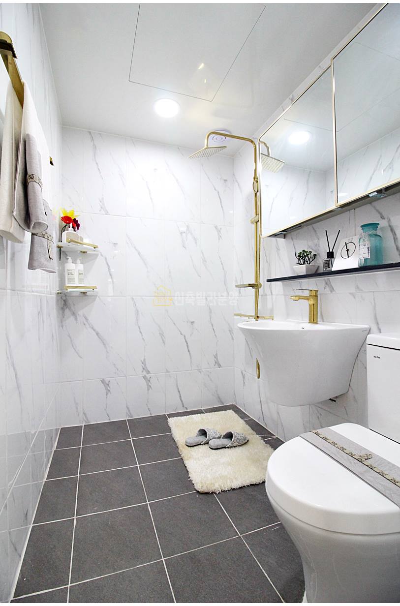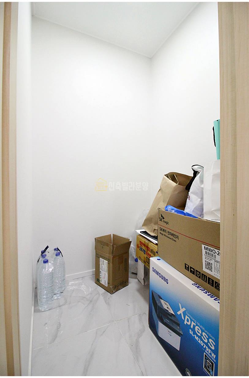 세 개 방은 모두 정방형에 가까워 가구배치가 자유롭고, 공간활용도가 높습니다. 욕실은 화이트와 골드 조합으로 고급스러우며, 수납함과 선반이 다양하게 구비되어 있습니다. 별도 다용도실에는 세탁기와 건조기 설치공간, 고효율 난방기기가 마련되어 있습니다.
