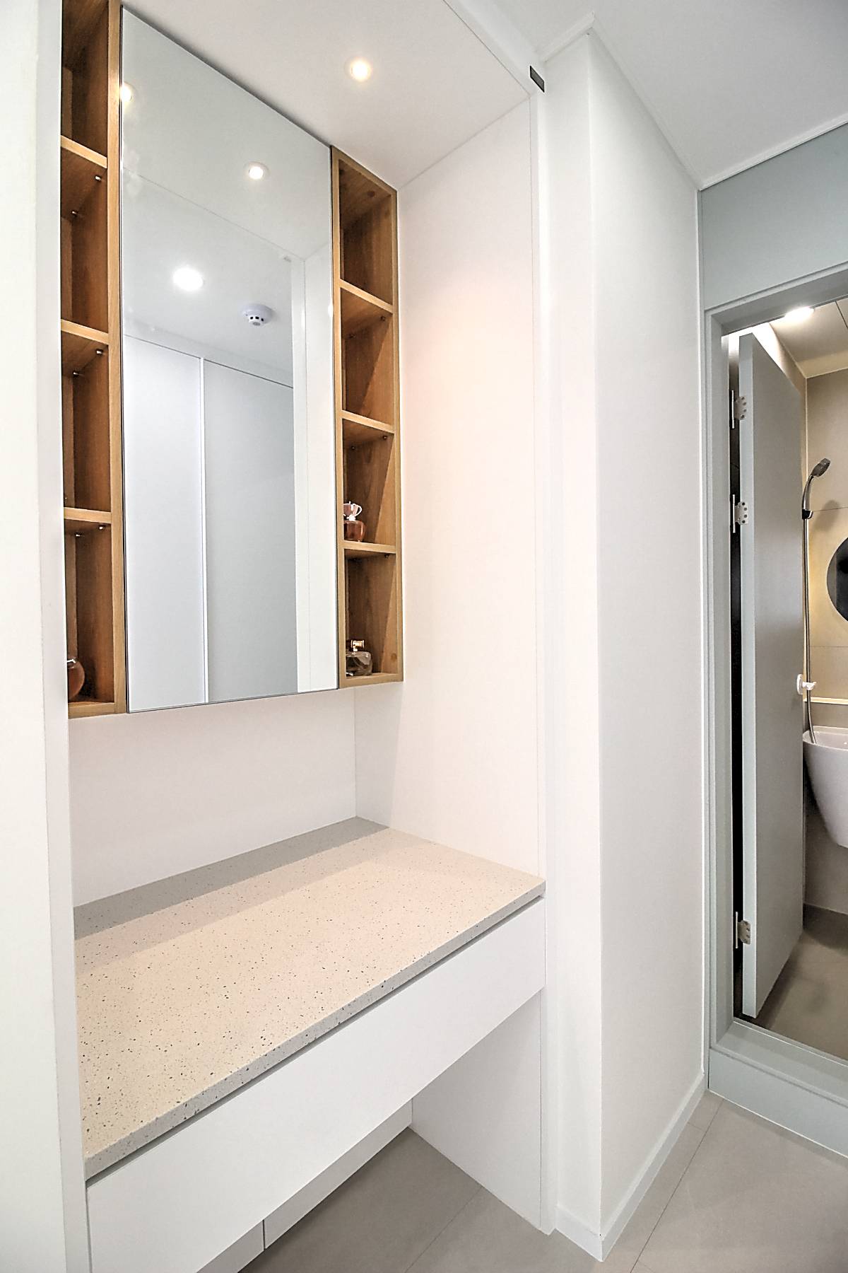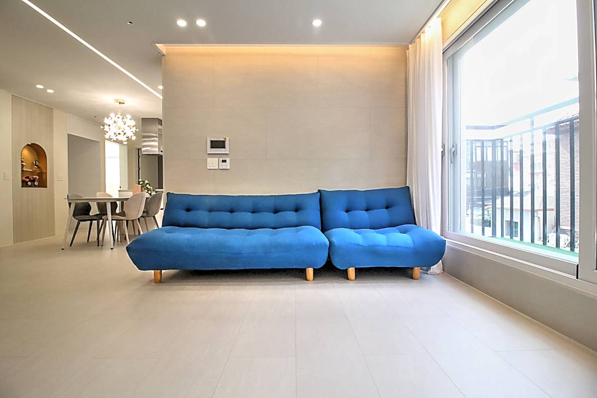 방 3개가 모두 큼직하게 빠져 4인 가족이 거주하기에 부족함이 없습니다. 안방에는 파우더룸과 붙박이장이 있어 공간 활용도가 뛰어나며, 각 방마다 에어컨이 설치되어 총 4대의 시스템 에어컨이 쾌적한 여름을 책임집니다. 욕실에는 고급스러운 조적 욕조를 시공하여 반신욕을 즐기며 하루의 피로를 풀 수 있습니다.