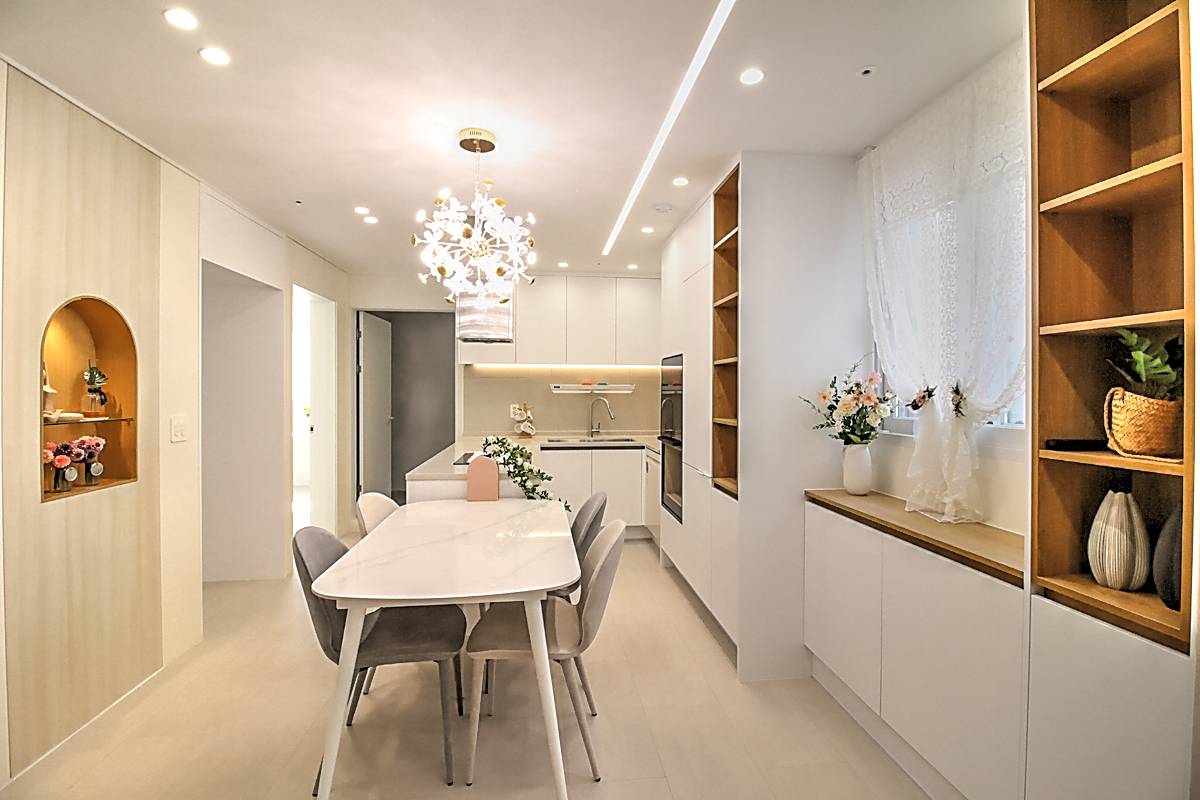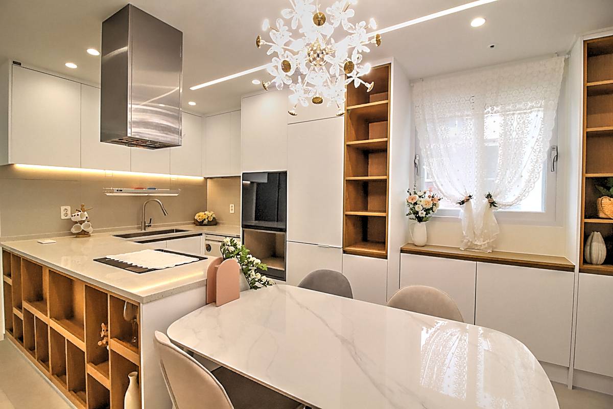 중랑구신축빌라 주부님들의 로망을 실현한 주방은 동선이 편리한 ‘ㄷ’자 구조로 설계되었습니다. 상하부장은 물론 별도의 추가 수납장을 설치해 살림살이 정리가 수월합니다. 특히 식기세척기와 김치냉장고까지 무상 옵션으로 제공되는 풀옵션 3룸 현장이라 혼수 비용까지 절약할 수 있습니다.