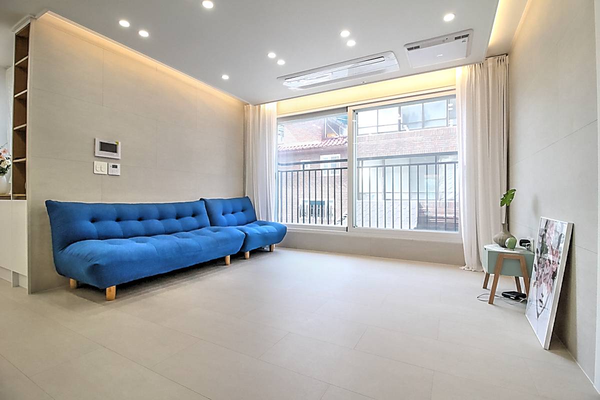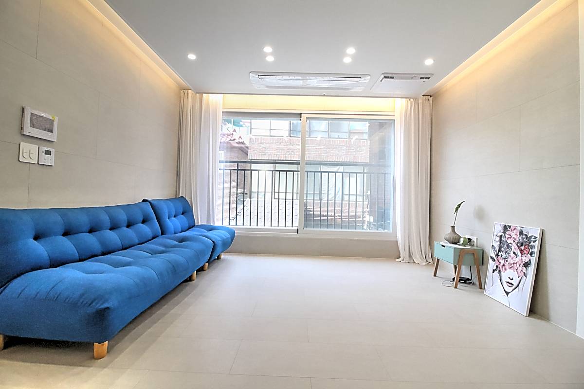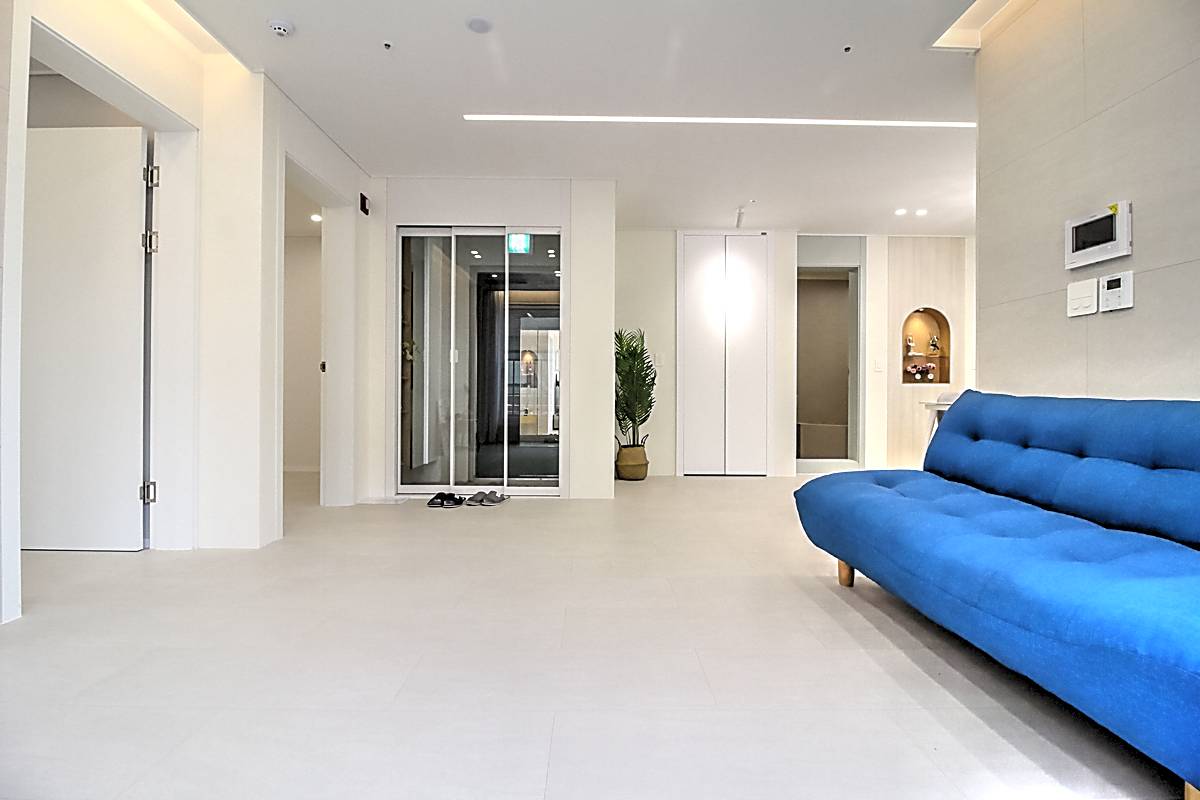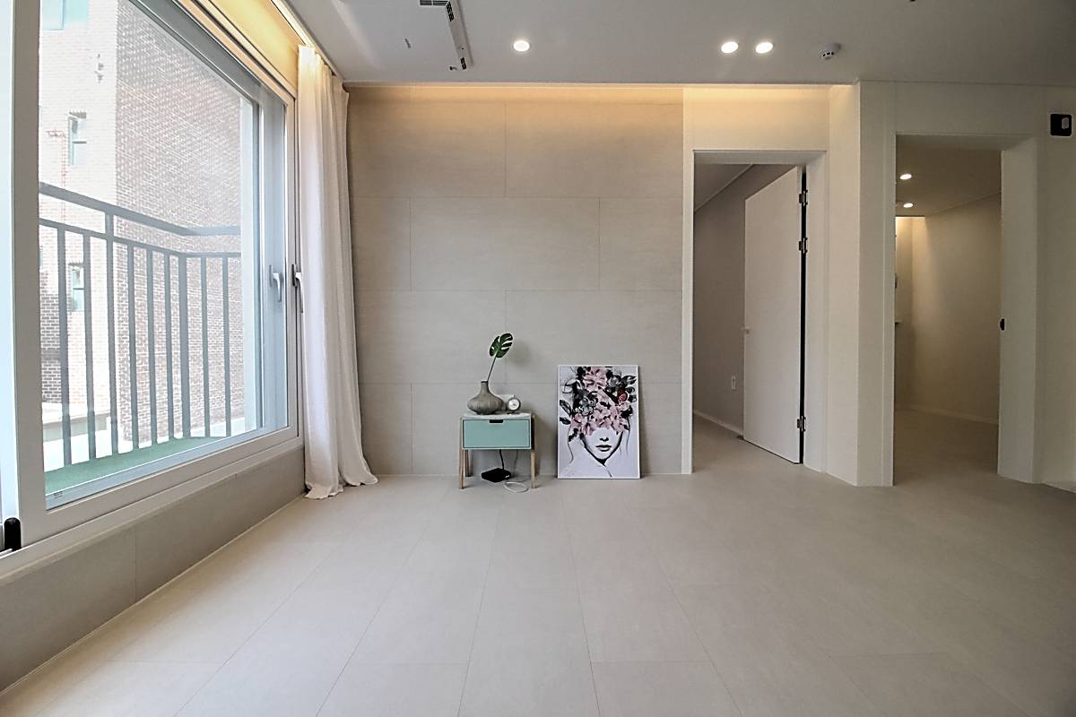 면목동신축빌라 건물 외관부터 남다릅니다. 라임스톤 고급 대리석으로 마감된 11층 높이의 웅장한 건물은 들어서는 순간 자부심을 느께게 합니다. 실내로 들어오면 바닥은 고급 포쉐린 타일로 시공되어 세련미를 더했고, 거실 천장에는 시스템 에어컨과 공기 순환을 돕는 전열교환기가 기본으로 설치되어 있습니다.