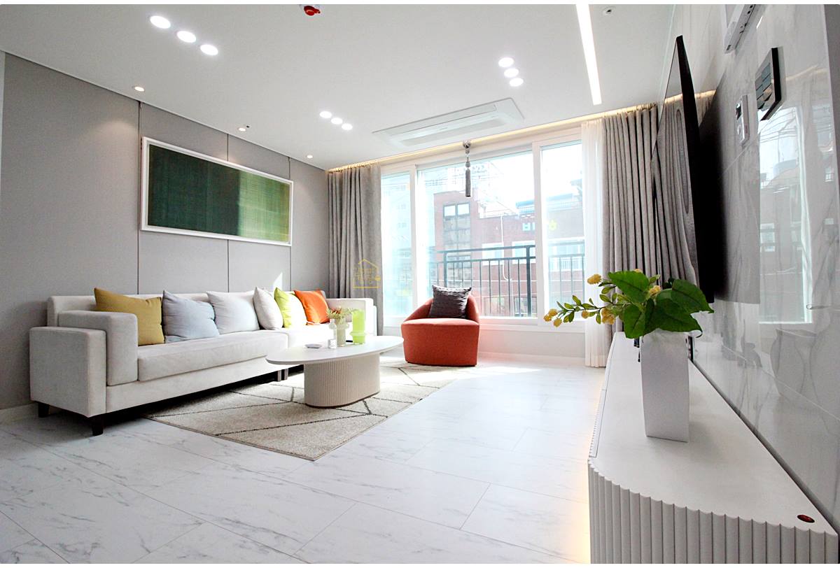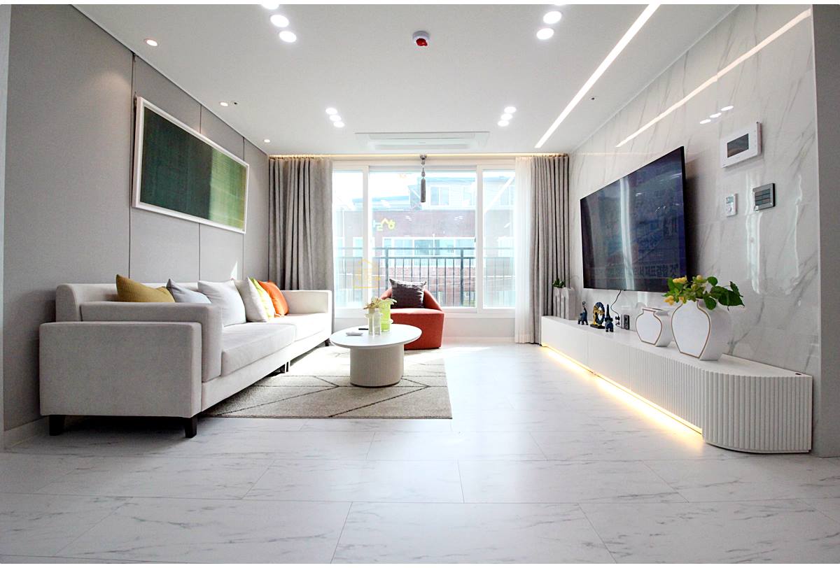 ✨ ㄷ자 주방과 풀옵션 시스템부천 신축빌라 10층 높이의 건물로 저층에서도 막힘없는 조망을 확보했습니다. 거실은 4인용 소파를 배치해도 여유로운 크기이며, TV 시청 거리도 충분합니다. 천장에는 시스템 에어컨이 옵션으로 설치되어 쾌적한 실내환경을 유지합니다.