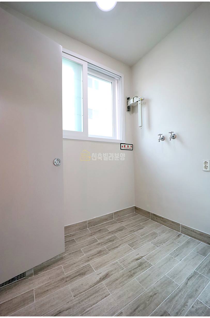 다용도실은 수전을 설치해 워시타워형 세탁기와 건조기를 배치하기 좋습니다. 세탁과 건조를 한 공간에서 해결할 수 있어 효율적입니다.