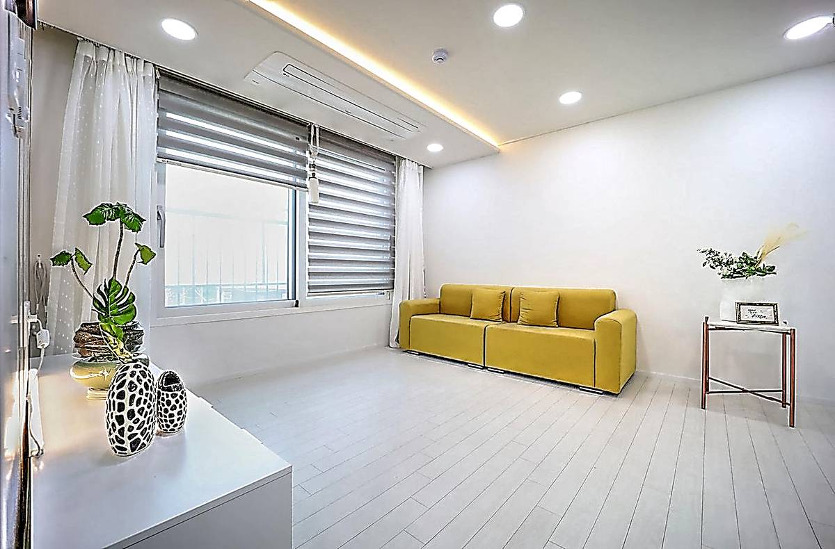 ✓ 화이트 톤 거실 + 시스템 에어컨