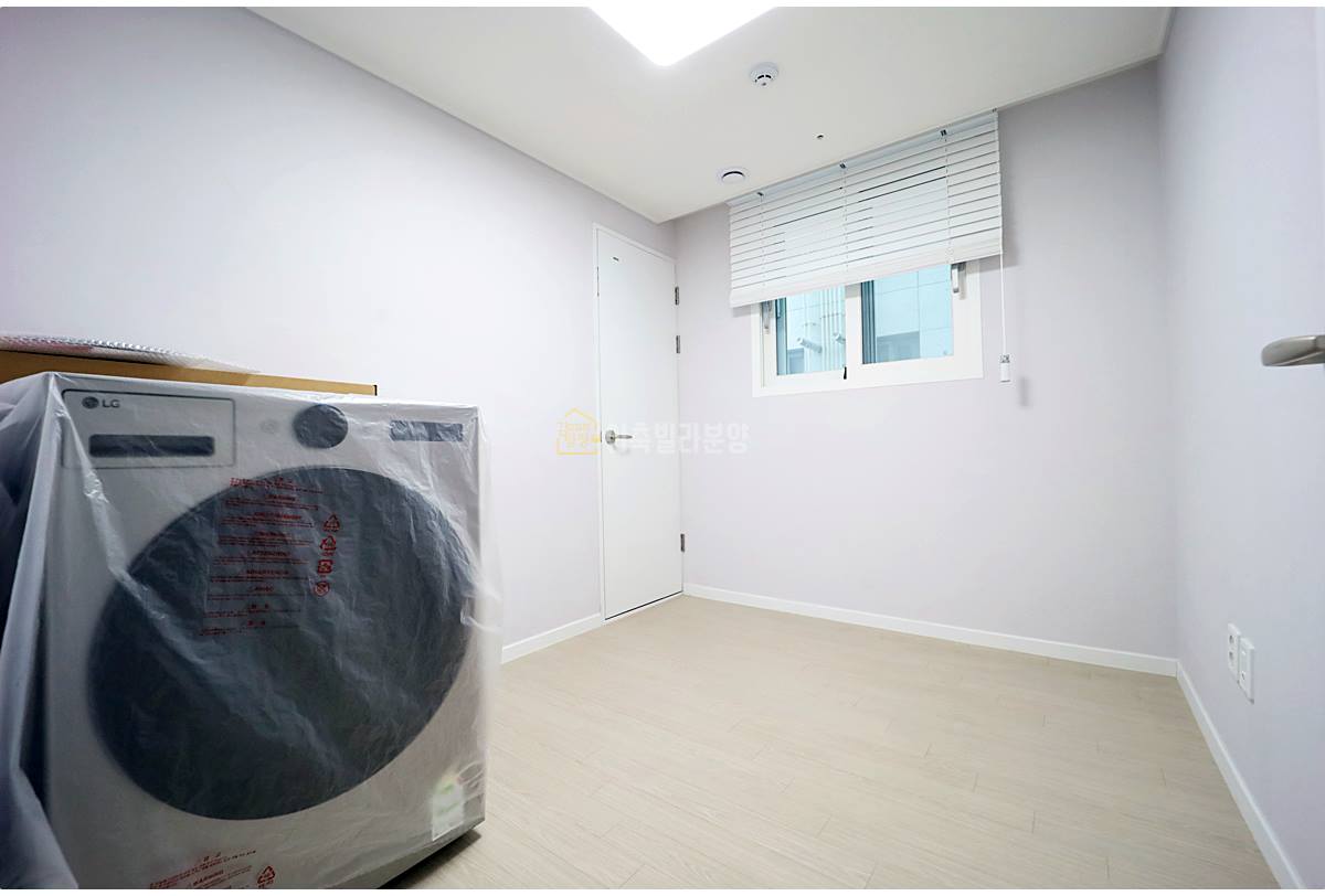 침실 공간은 네모 반듯한 정방형에 가까운 구조로 이루어져 있어, 침대와 옷장 배치가 용이합니다. 공간 활용도가 높은 형태라 할 수 있죠.