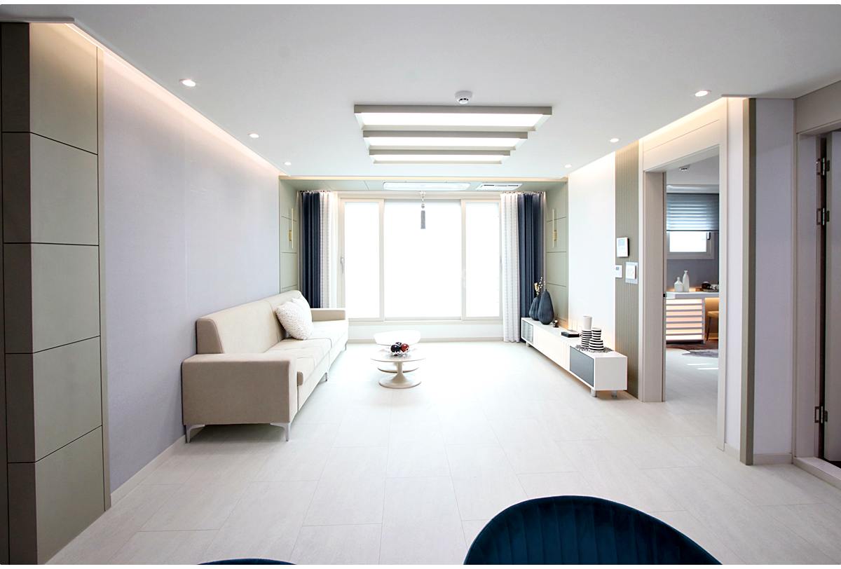 반듯한 3베이 구조라 가구 배치가 수월하고 전면 막힘이 없어 채광이 깊숙이 들어오는 모습이 인상적이었답니다.