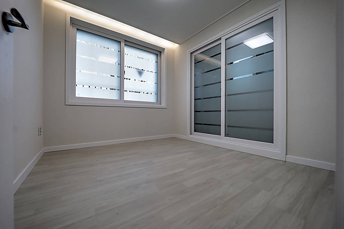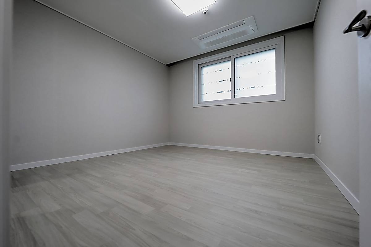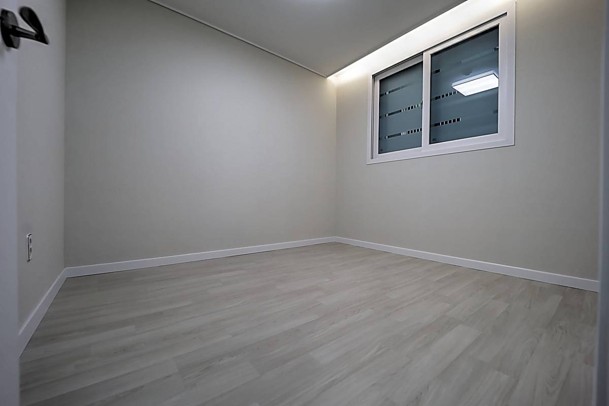안산신축빌라 전체 3개의 침실은 모두 넉넉하고 반듯한 구조로 설계되었습니다. 안방에는 전용 욕실이 딸려 있으며, 거실과 마찬가지로 시스템 에어컨이 설치되어 있습니다. 모든 방은 밝은 느낌의 조명과 옅은 우드 톤 강마루로 마감되어 편안한 분위기를 연출합니다.