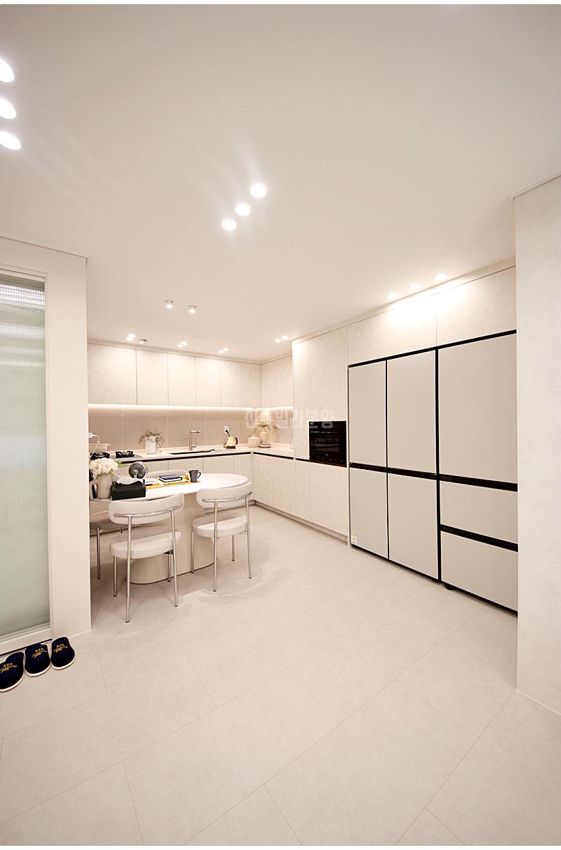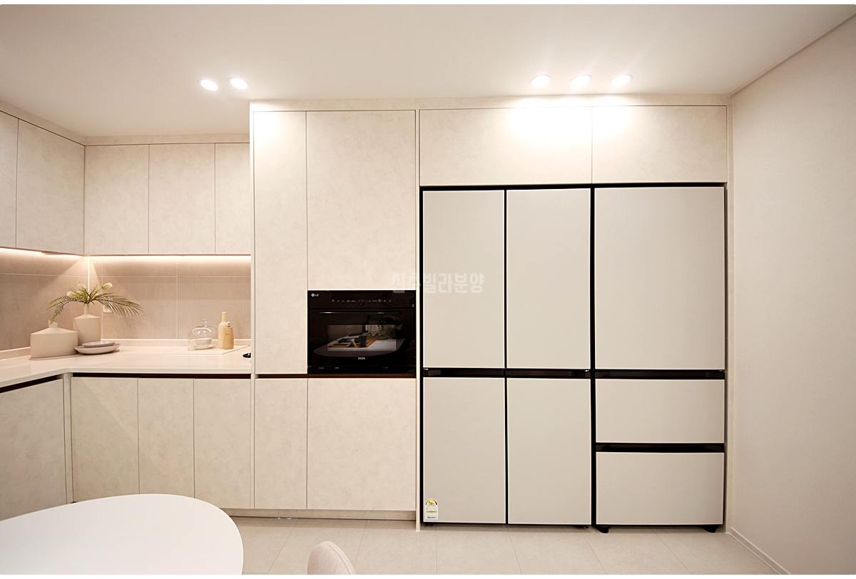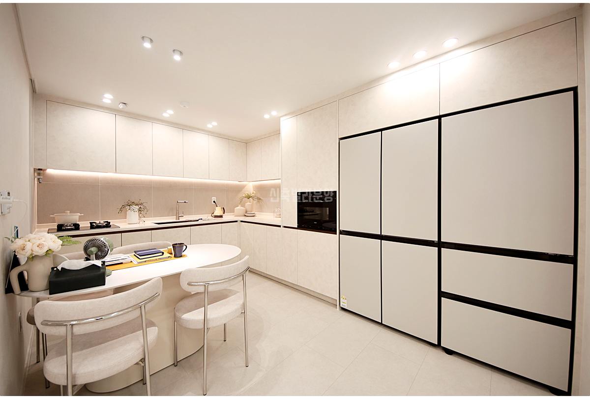 선부동빌라매매 조리 공간은 ㄱ자 형태로 설계되어 요리하는 동선이 효율적입니다. 다이닝 영역도 넓어서 6인 가족이 함께 식사할 수 있는 테이블을 놓아도 공간이 충분합니다.