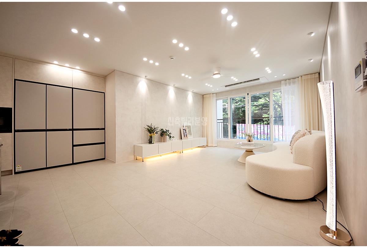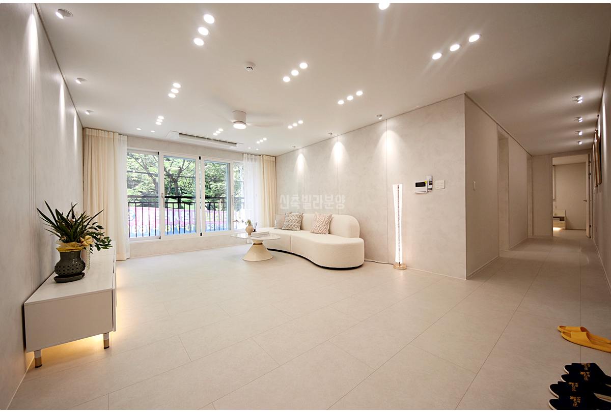 안산신축빌라 중앙 홀에서 메인 공간으로 들어서면 바로 눈에 들어오는 것이 넓은 창문입니다. 이 창을 통해 바깥 풍경이 한눈에 들어오며, 특히 도로변 수목들이 계절마다 다른 모습을 보여줍니다. 큰 유리창은 자연광을 충분히 받아들여 낮 시간 동안 밝고 쾌적한 분위기를 만들어냅니다.