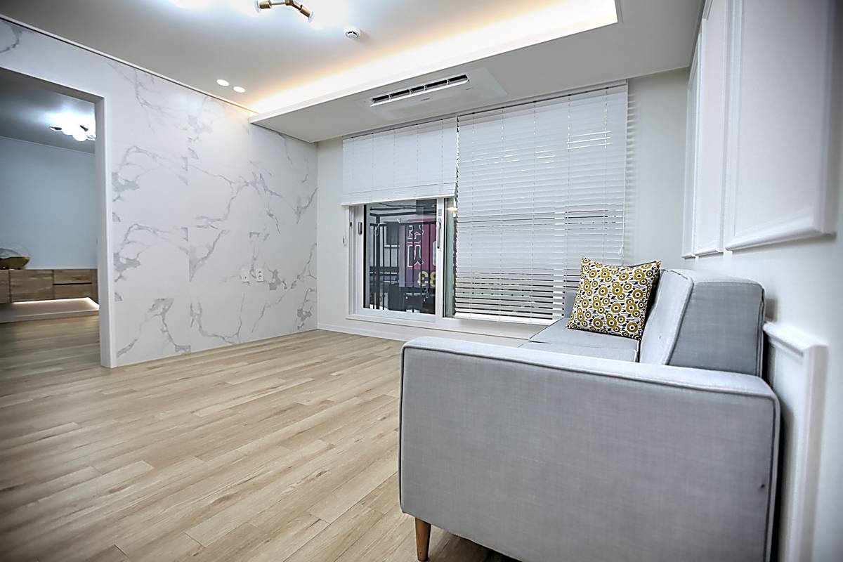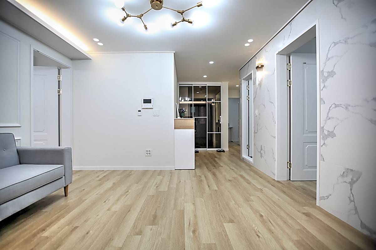 안양동빌라매매 23평 3룸 구조는 3베이 설계로 안정감이 뛰어납니다. 천장에는 시스템 에어컨이 매립되어 공간 활용도가 높으며, 한여름에도 쾌적함을 유지할 수 있습니다. 아트월은 비앙코 타일로 마감했고, 소파월에는 웨인스코팅을 적용해 입체감을 극대화했습니다. 바닥재는 우드 질감의 마루로 마감되어 따뜻한 분위기를 연출합니다.