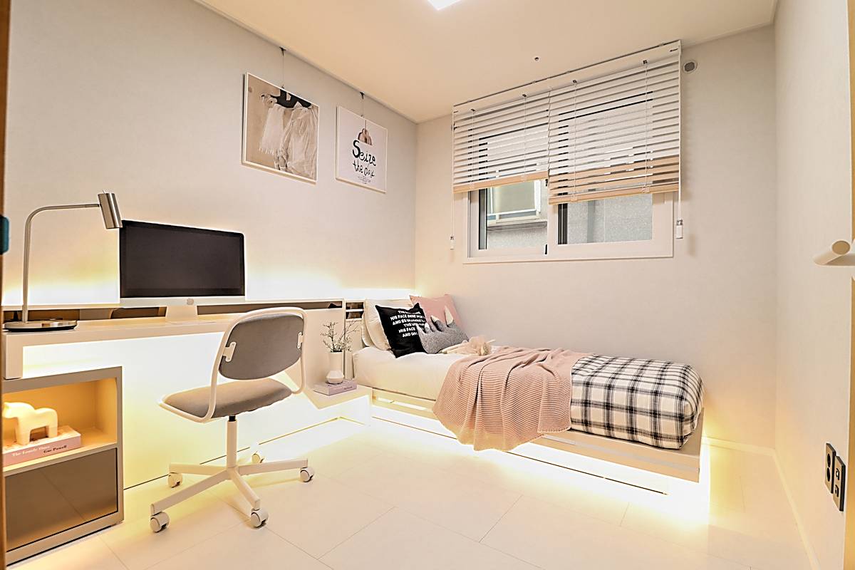 방 3개는 모두 채광이 우수하고 네모반듯해서 가구 배치가 용이합니다. 특히 세 번째 방은 발코니와 테라스로 연결돼 있어서 아이방이나 서재로 쓰기에 완벽하죠. 안방에는 공기순환기까지 설치되어 있어요.