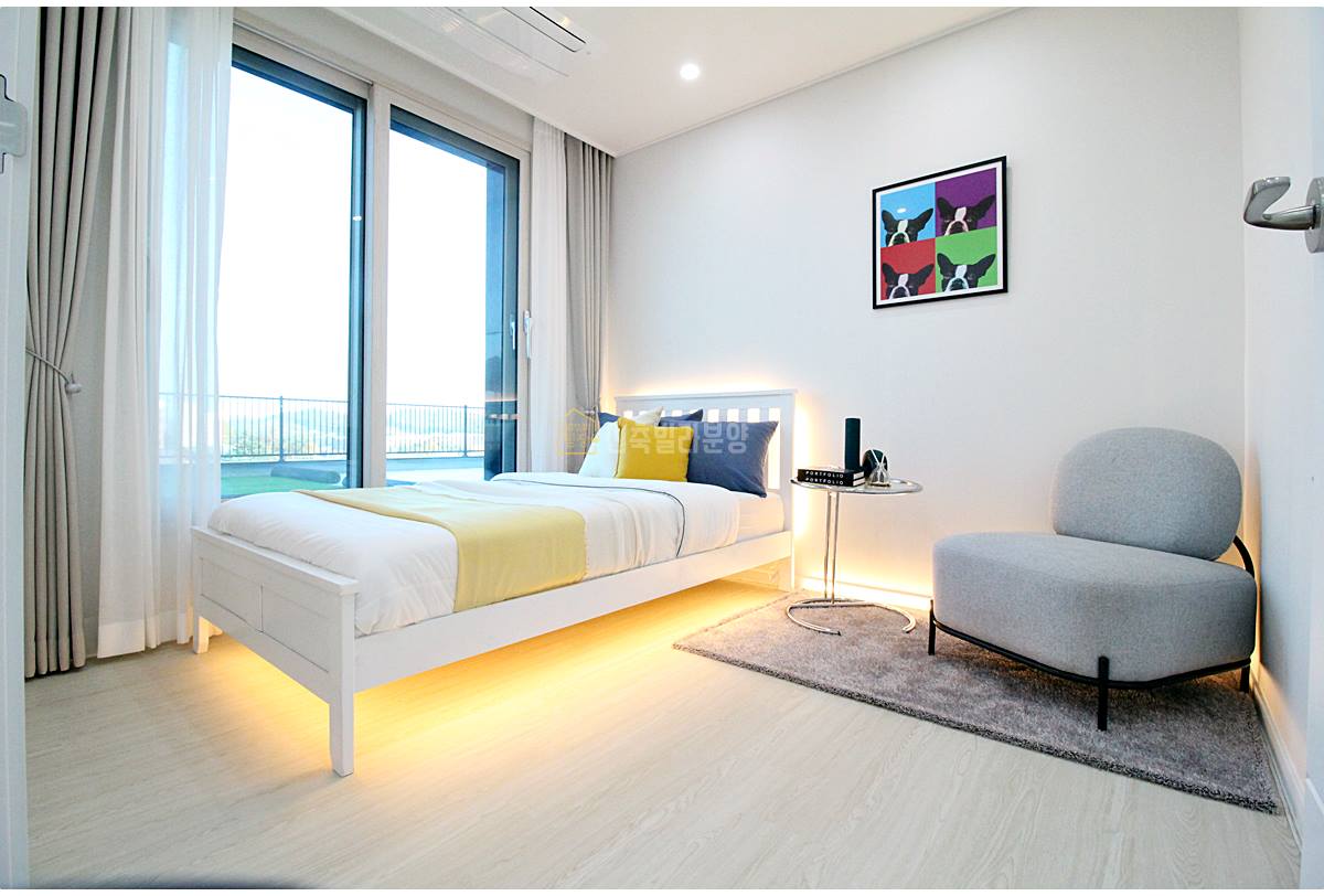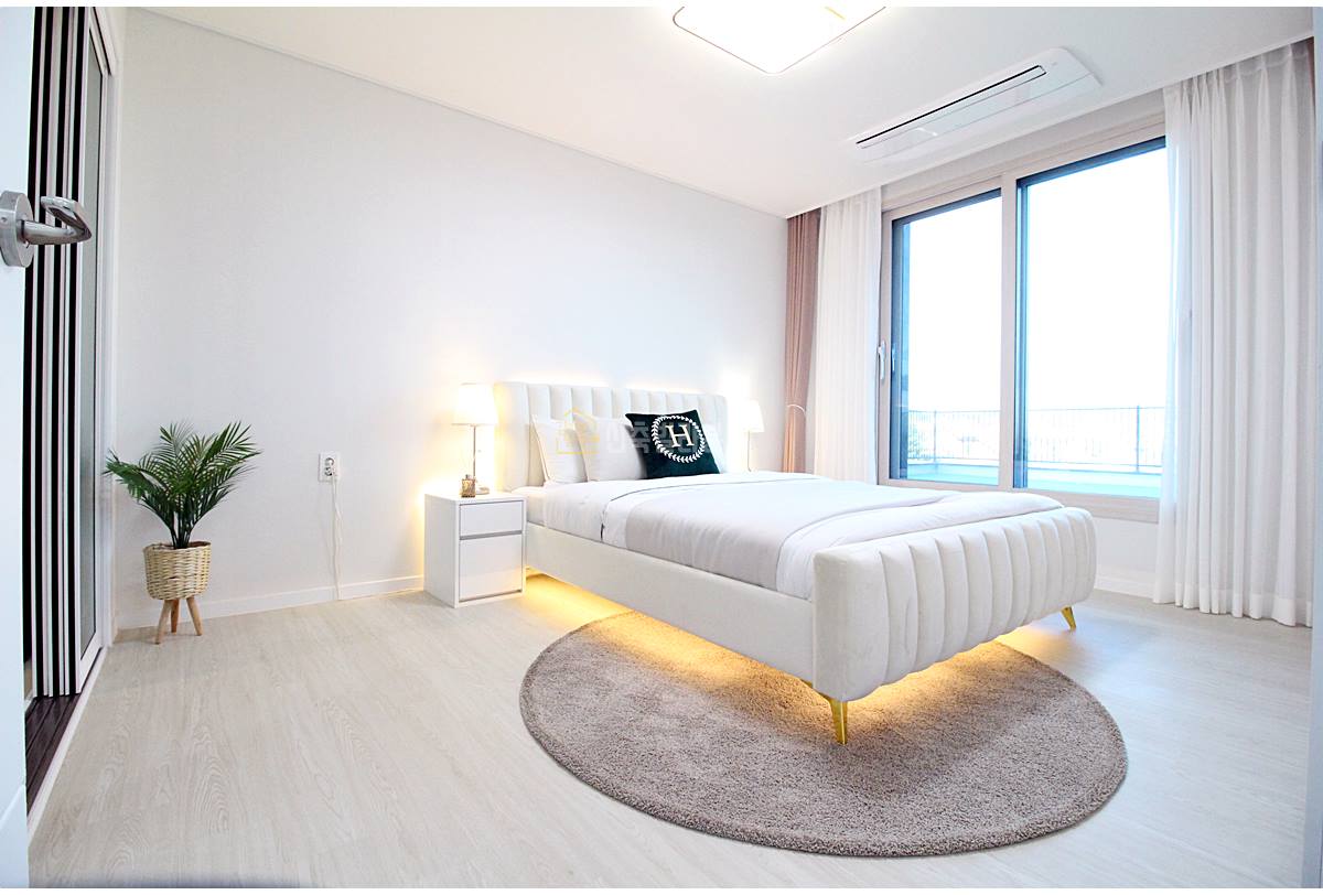 안방에도 시스템 에어컨이 기본 옵션으로 매립되어 있습니다. 공간이 넓고 드레스룸이 별도로 있어서 많은 옷을 수납할 수 있습니다. 3BAY구조로 안방에서도 바로 테라스로 나갈 수 있어 아침 햇살을 맞으며 하루를 시작할 수 있습니다.