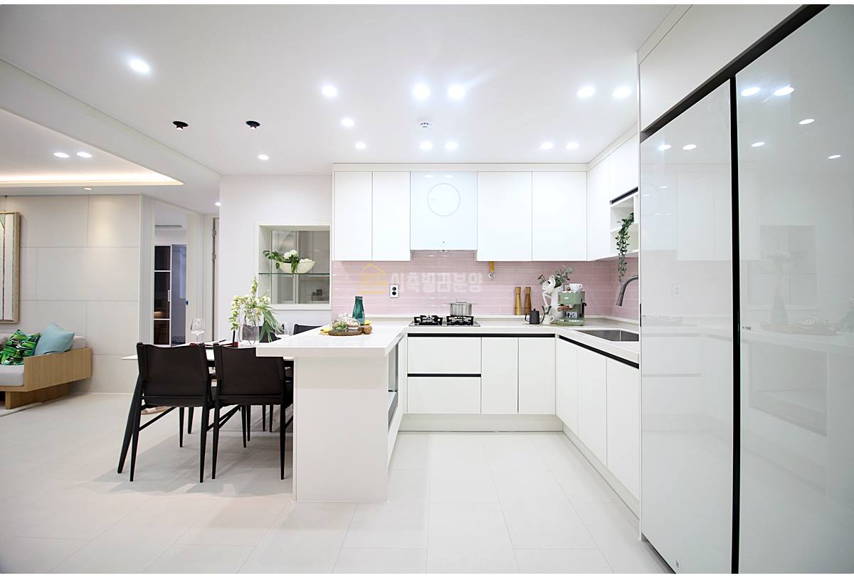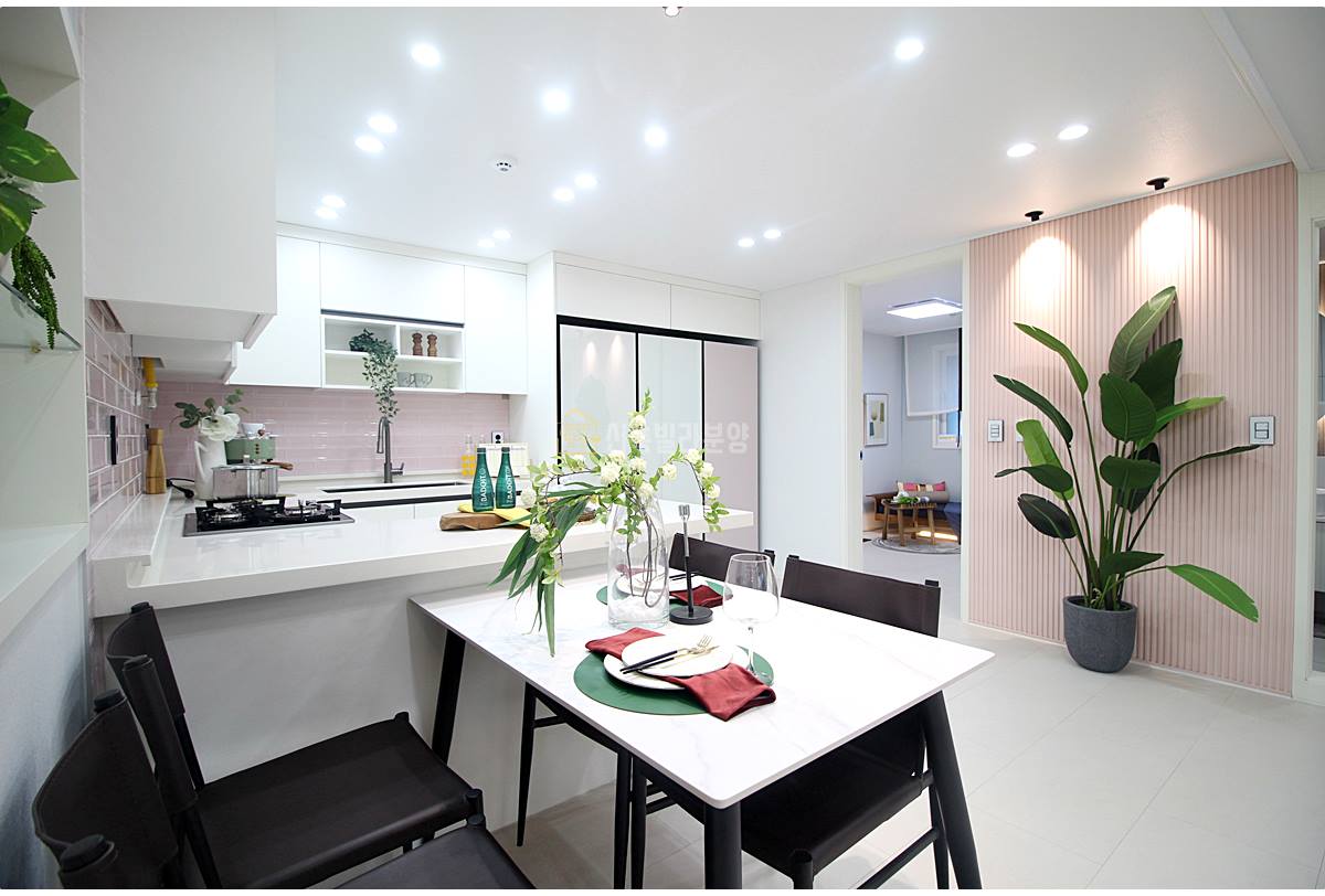 안산시신축빌라 현대적인 디자인의 주방은 요리하는 즐거움을 배가시켜줍니다. 아일랜드 식탁이 중심에 자리 잡아 작업 효율성을 높이고, 넉넉한 수납공간은 정리정돈을 쉽게 만들어줍니다. 최신형 냉장고와 김치냉장고가 빌트인으로 갖춰져 있어 깔끔하고 효율적인 주방 환경을 자랑해요. 요리하며 가족과 소통하는 행복한 시간을 선사할 공간이에요.