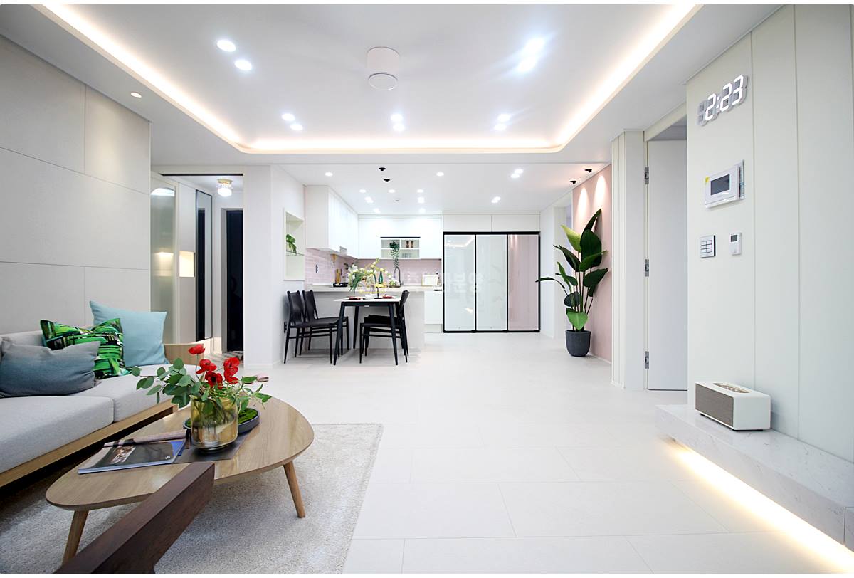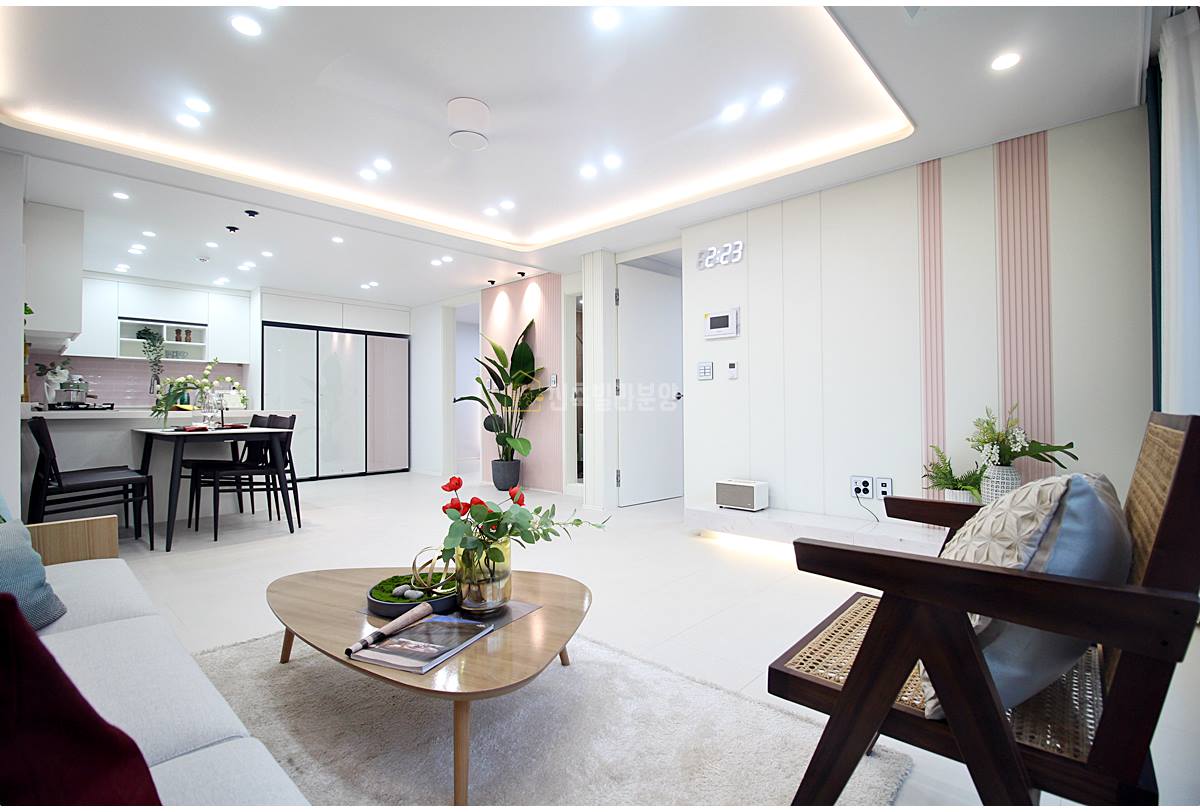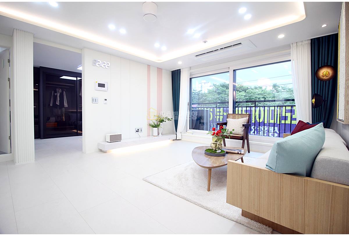 월피동신축빌라 거실은 하루를 시작하고 마무리하는 중심 공간이에요. 넓고 밝은 창문을 통해 쏟아지는 햇살이 공간을 아늑하게 감싸줍니다. 우물형 천장 덕분에 더욱 넓고 쾌적한 느낌을 주고, 세련된 디자인의 가구를 배치해도 넉넉한 공간이 남아 자유롭게 취미 활동을 즐길 수 있어요. 가끔은 가족과 함께 영화를 보거나 친구들과 즐거운 시간을 보내기에 완벽한 공간이죠.