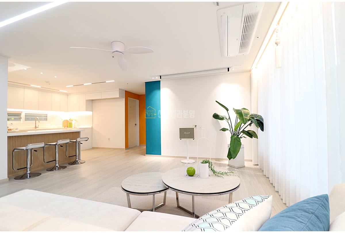 거실은 와이드 비율로 개방감이 우수하고, 주방은 아일랜드 동선을 적용해 식사와 준비 영역이 분리됩니다. 알파룸은 서재·게임룸 등 취향에 맞게 쓰기 좋고, 필요 시 알파룸 가변형 4룸으로 확장 활용도 가능합니다. 방마다 채광과 통풍을 고려해 쾌적함을 높였습니다.