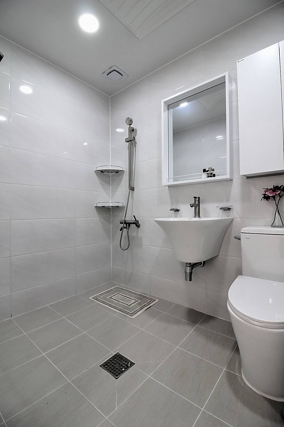 욕실 설비: 수납장, 코너장, 미끄럼방지 타일