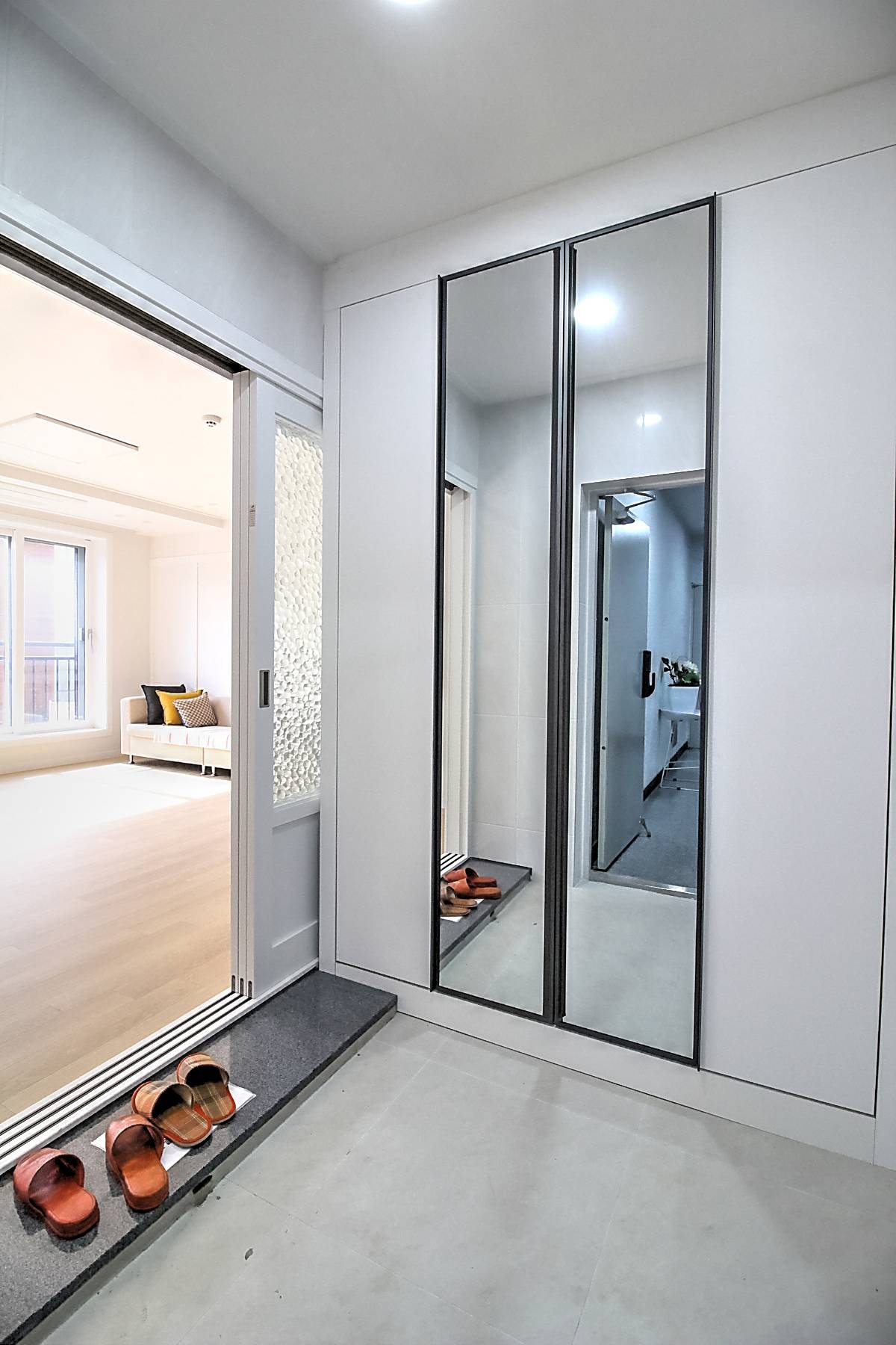 현관을 열고 들어서면 밝고 깨끗한 공간이 방문객을 맞이합니다.