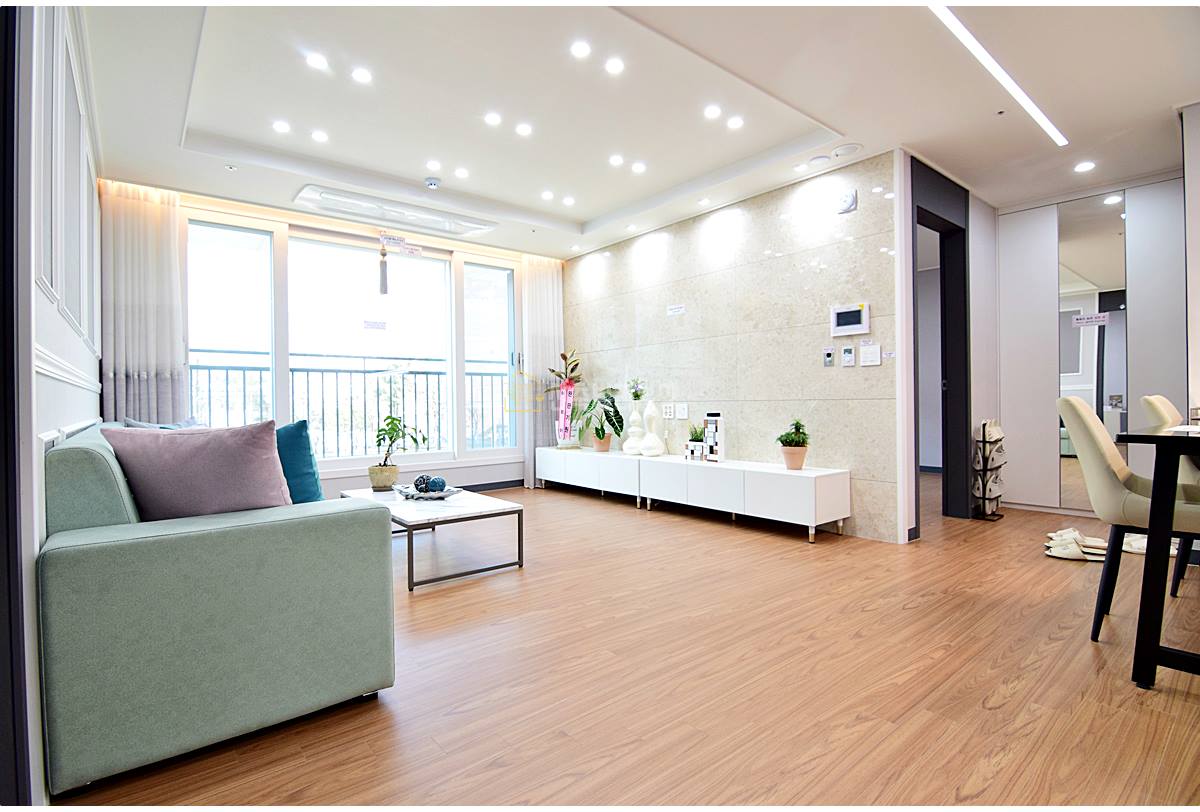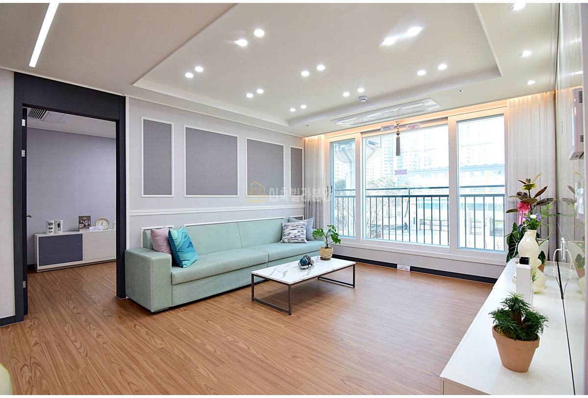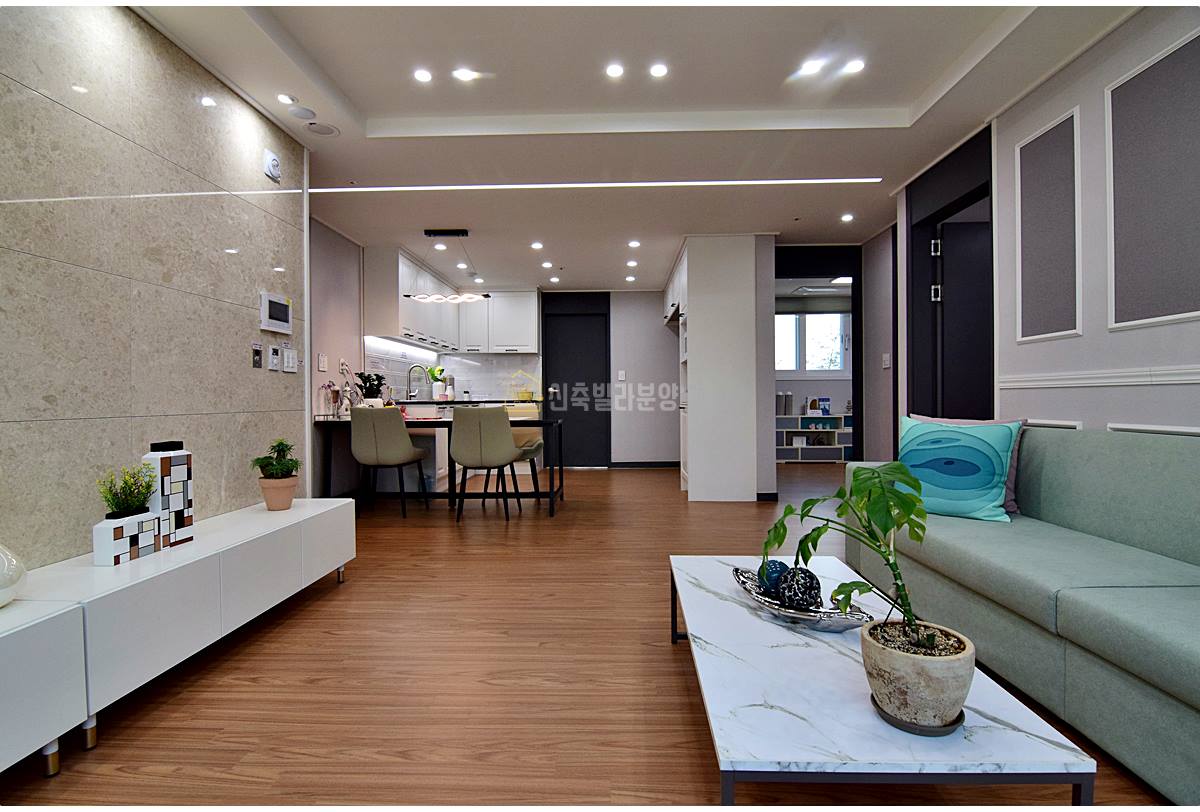 호원동신축빌라 거실은 넓고 밝은 창문을 통해 햇살이 가득 들어오는 아늑한 공간입니다. 꺾임 없는 네모반듯한 형태로 소파와 TV 배치가 여유롭고, 우물형 천장이 공간에 개방감을 더합니다. 친환경 강마루 바닥재와 기본 설치된 시스템 에어컨 덕분에 편안하고 세련된 분위기를 자랑합니다. 가족과 함께 영화를 보거나 친구들과 즐거운 시간을 보내기에 완벽한 공간입니다.