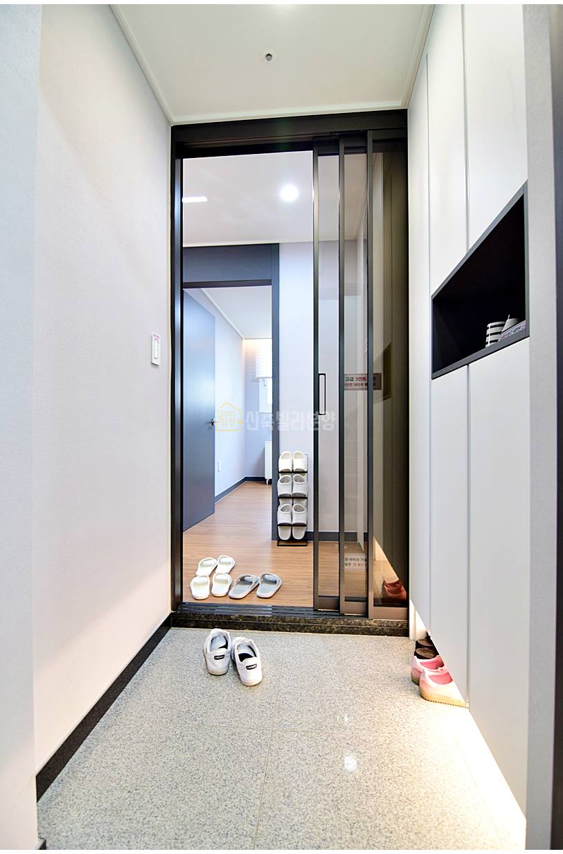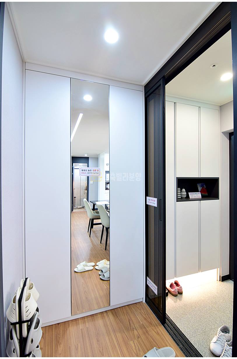 넓은 신발장은 다양한 신발을 정리하기 용이하며, 중문은 외부 소음과 먼지를 차단하여 집 안을 더욱 조용하고 쾌적하게 유지합니다. 일괄 소등 스위치로 편리하게 조명을 제어할 수 있습니다.