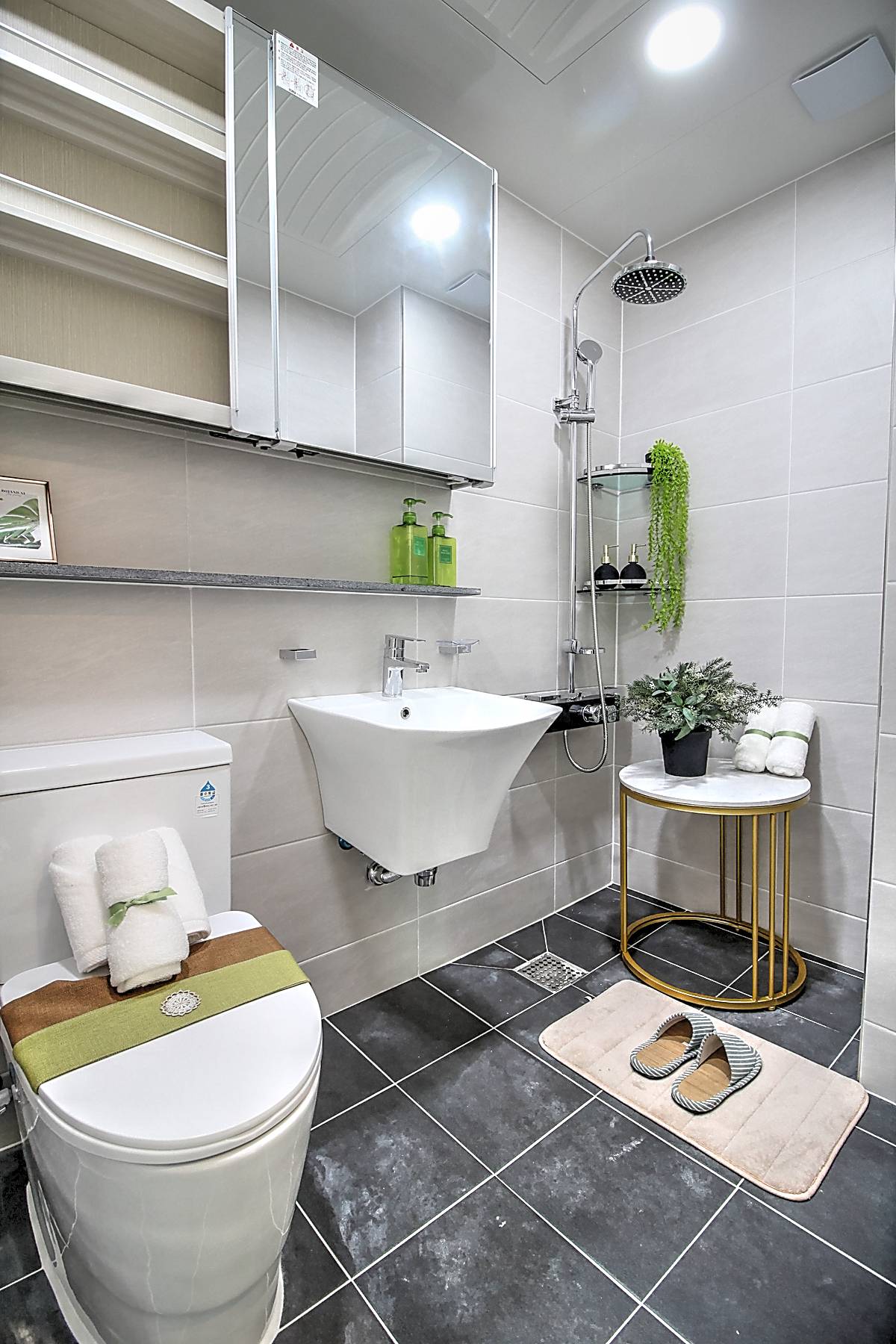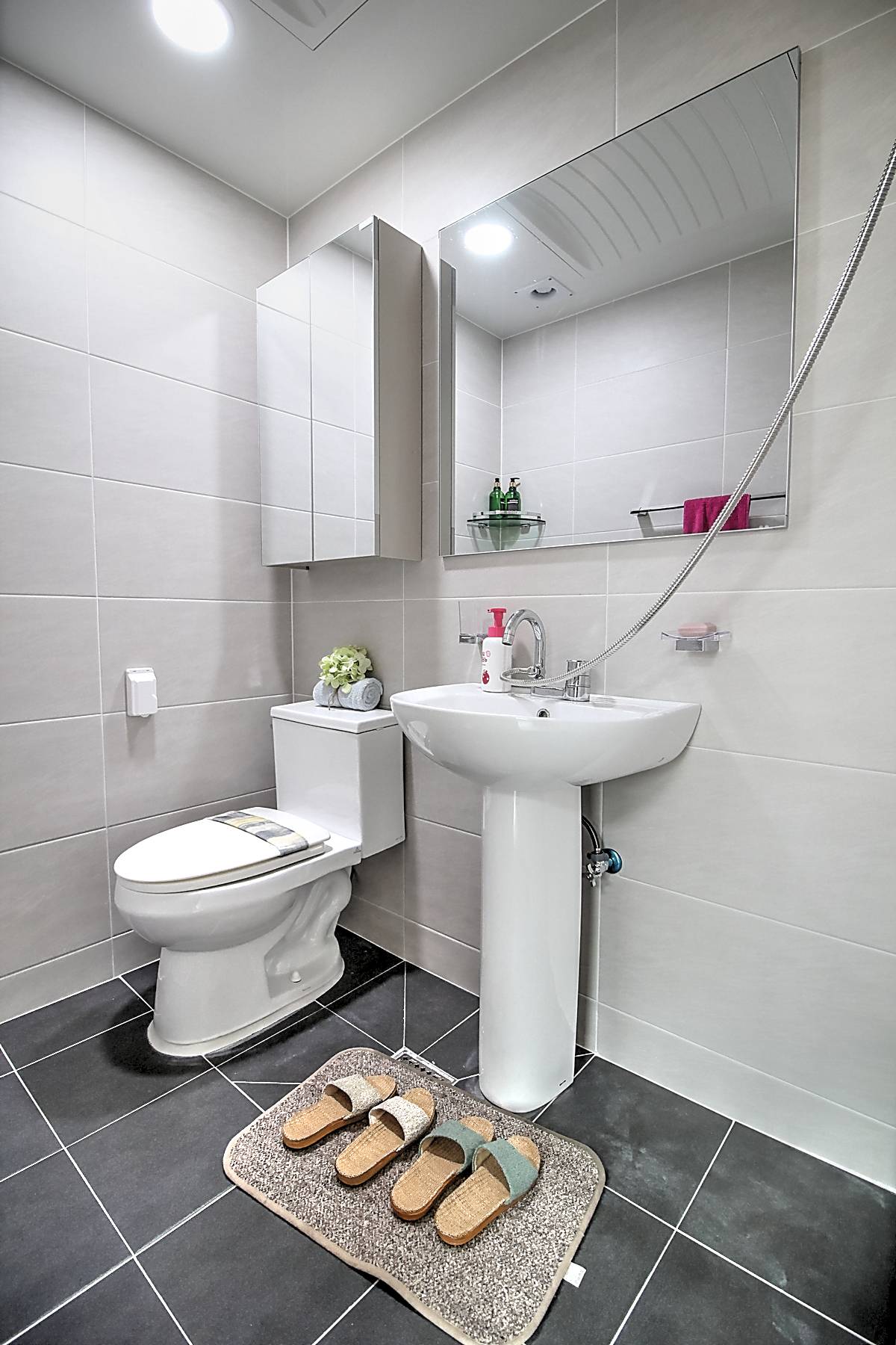 안방 욕실은 컴팩트하지만 샤워 시설이 완비되어 있어, 아침 시간 겹침 없이 각자 준비할 수 있다는 게 은근한 장점입니다.