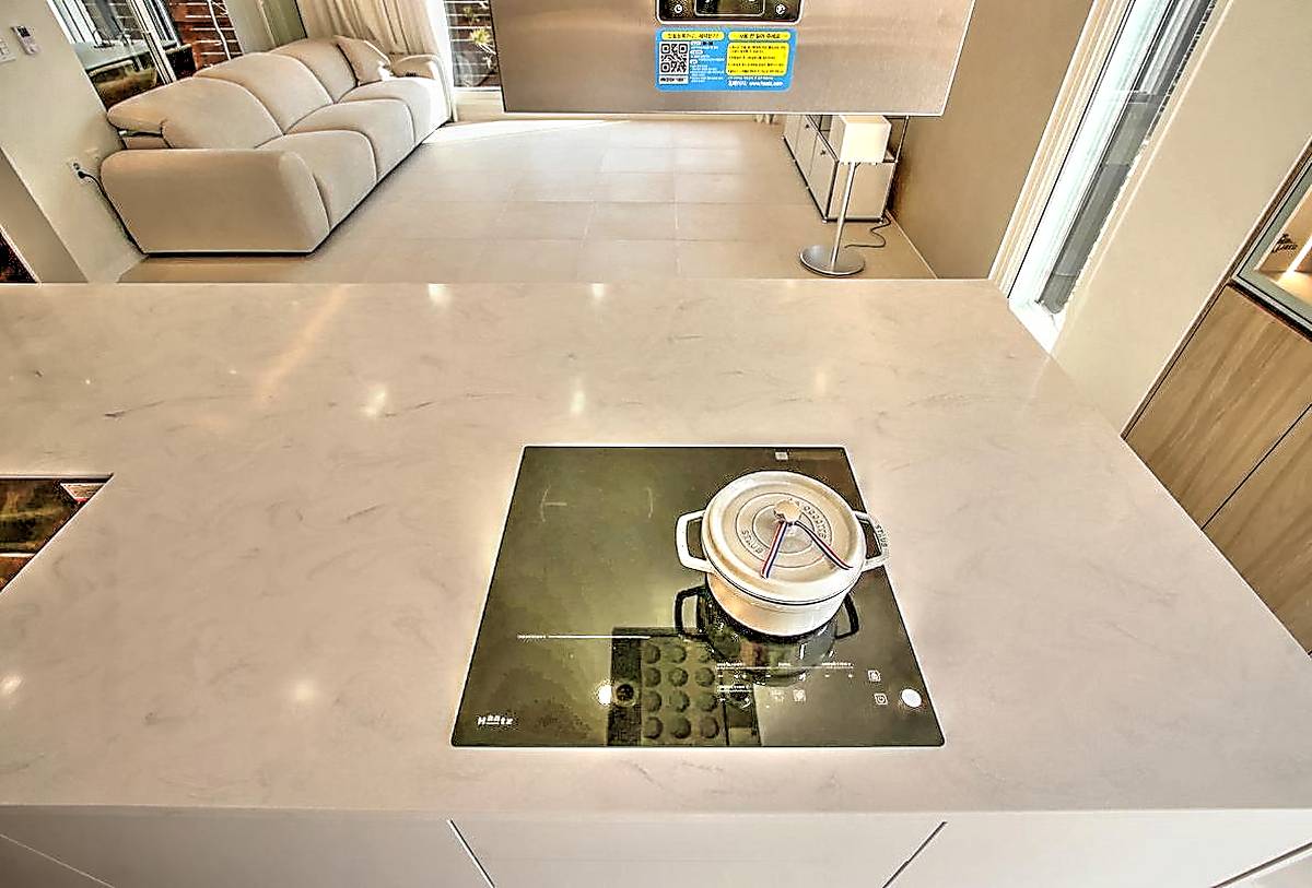 요리하면서도 거실에 있는 가족들과 대화할 수 있고 시각적으로도 공간이 넓어 보이는 효율가 있어서 인기가 많죠.