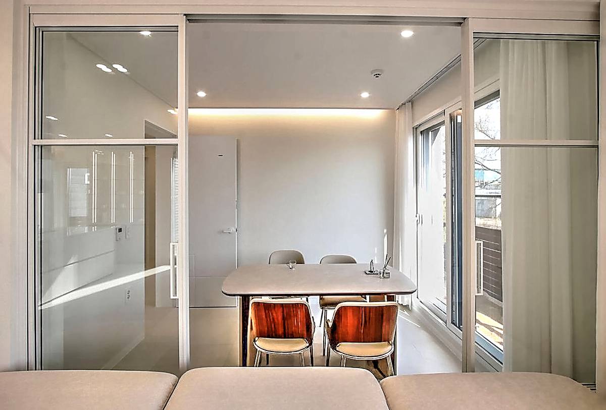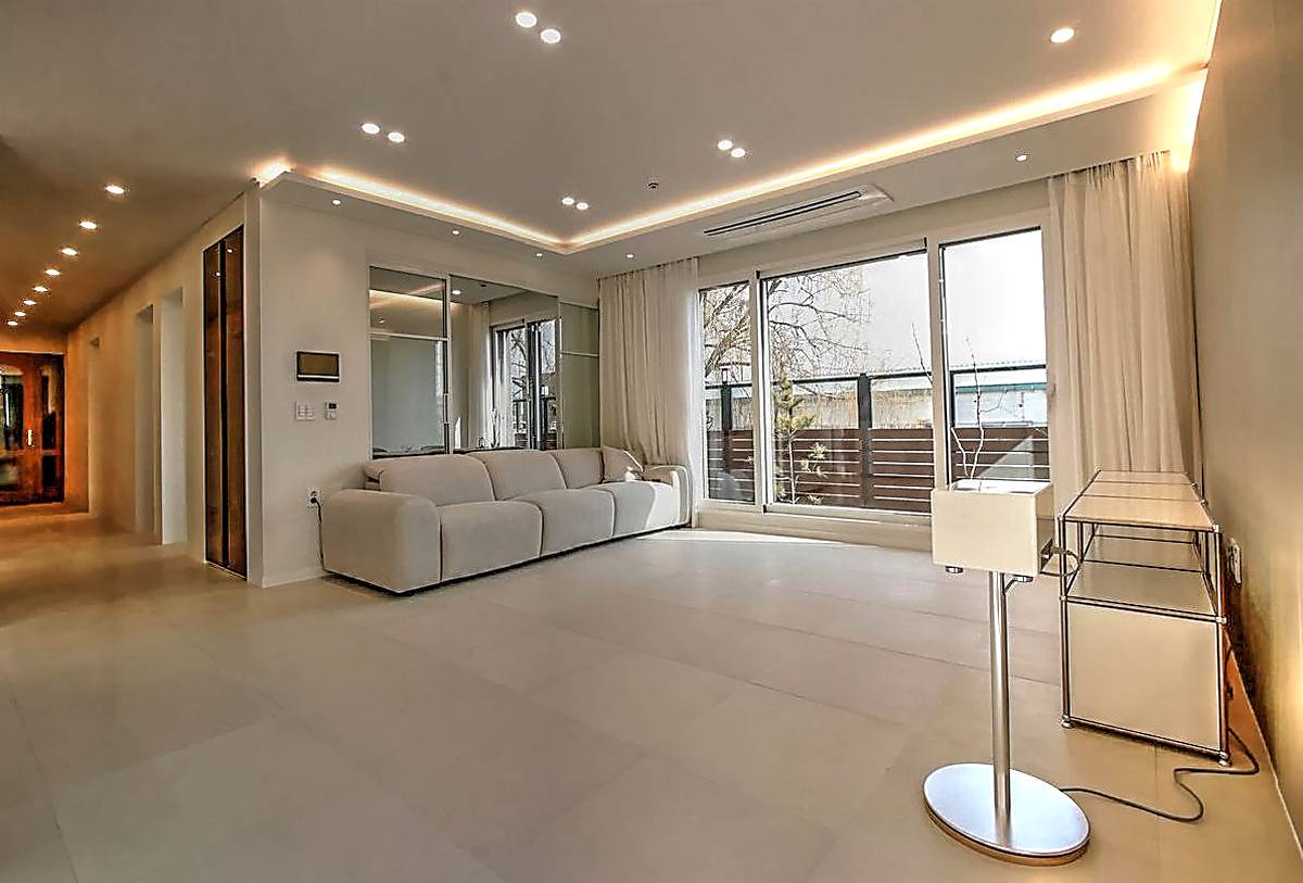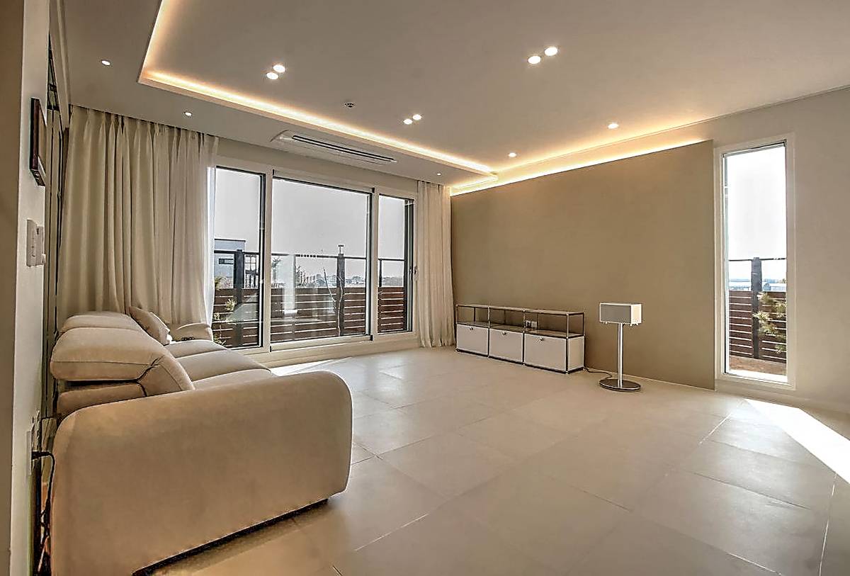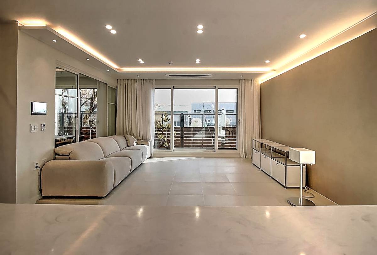 거실은 양창 구조로 설계되어서 자연광이 하루 종일 쏟아져 들어와요.
