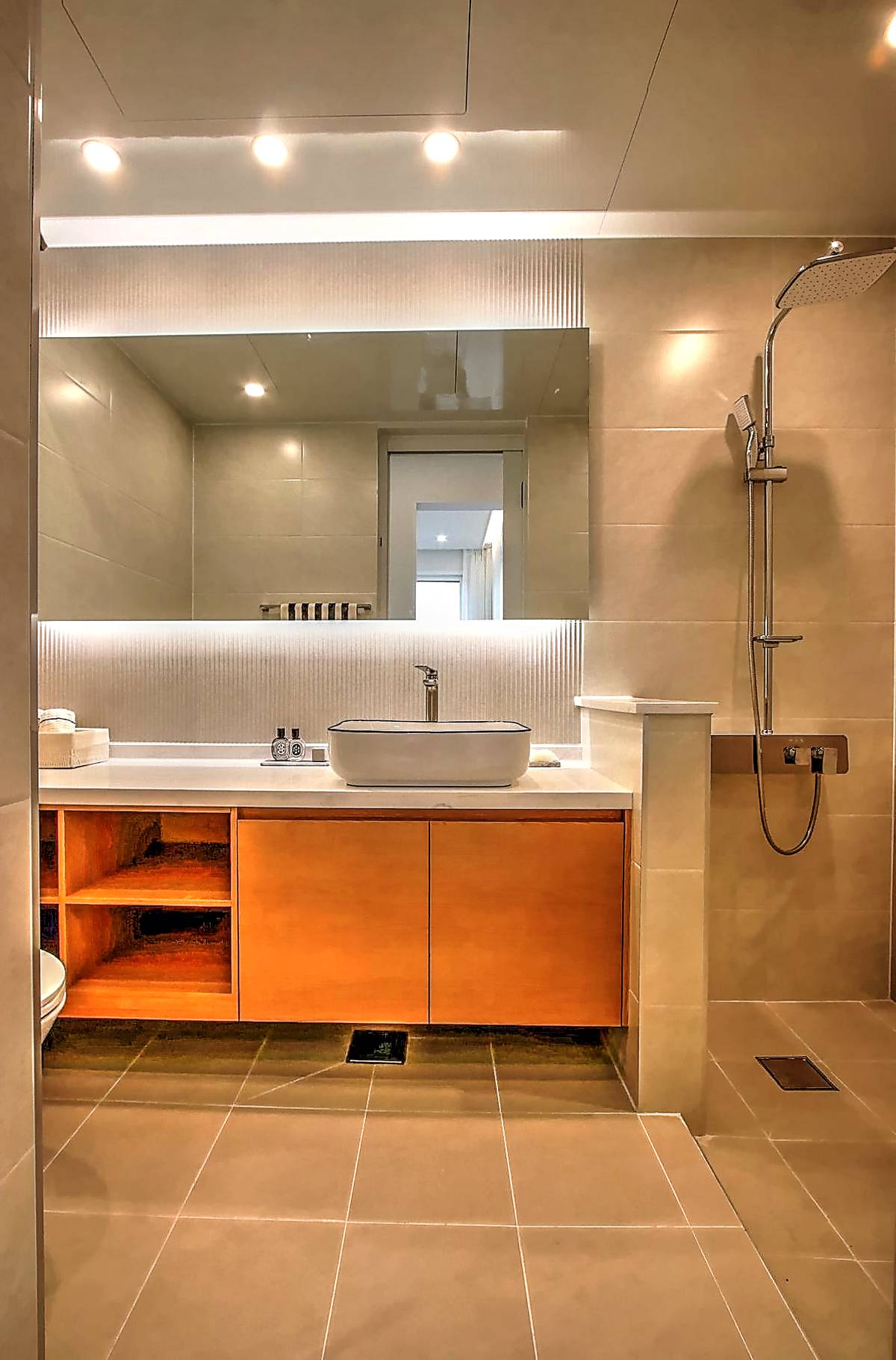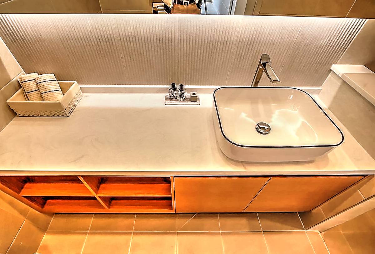 바닥은 포쉐린 타일로 마감되어 있는데 이게 고급스러우면서도 관리하기 편해서 좋아요.