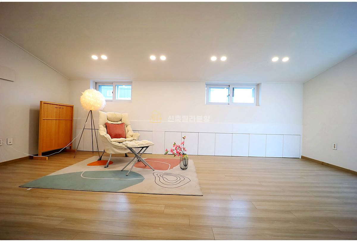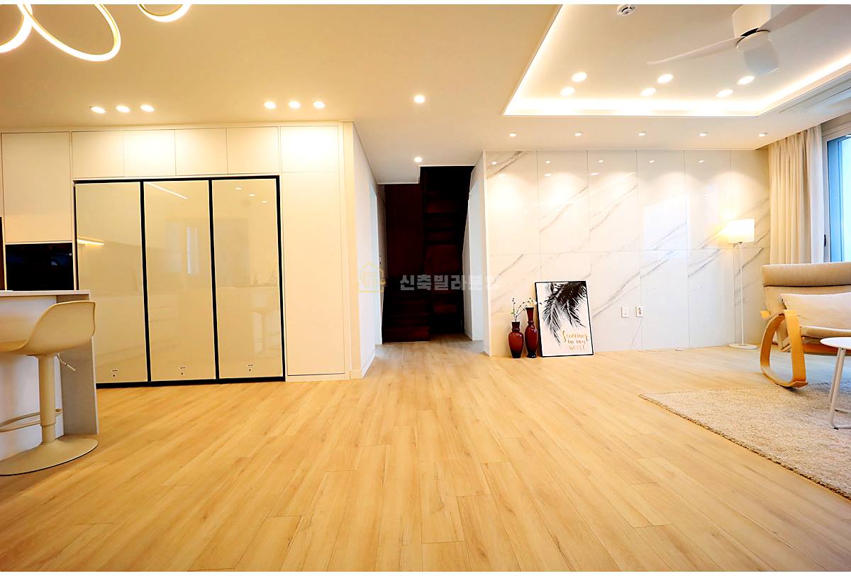야당동신축빌라 매매 우드 아트월로 트렌디한 분위기로 꾸며진 거실 공간은 시스템 에어컨을 비롯해 실링팬이 설치되어 쾌적한 생활이 가능합니다. 다양한 가구를 배치하기 용이한 모습으로 공기순환기도 기본으로 시공되어 있습니다.