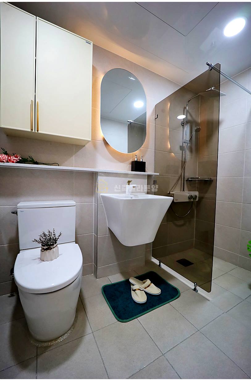 침실 욕실은 샤워공간을 파티션으로 분리해두어 물 튀김을 방지합니다. 3개의 욕실 모두 기본 구성이 탄탄하게 완비되어 있어 욕실 생활에 문제가 없습니다. 대가족이 동시간대에 사용해도 불편함이 없습니다.