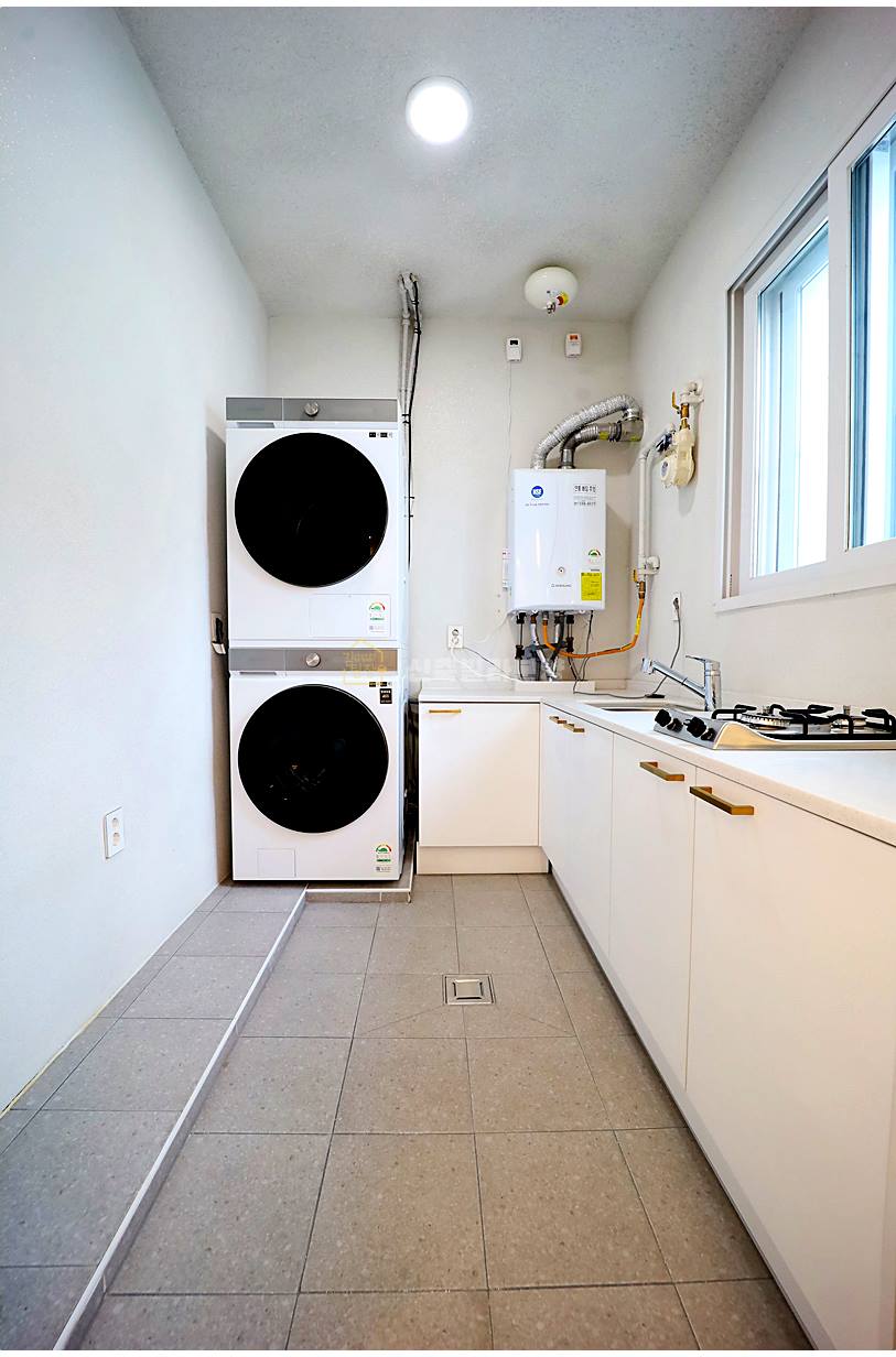 다용도실에는 세탁기와 건조기가 기본으로 제공되어 있으며, 보조 조리대가 있어 강한 냄새가 남는 음식을 더욱 깔끔하게 조리할 수 있습니다.
