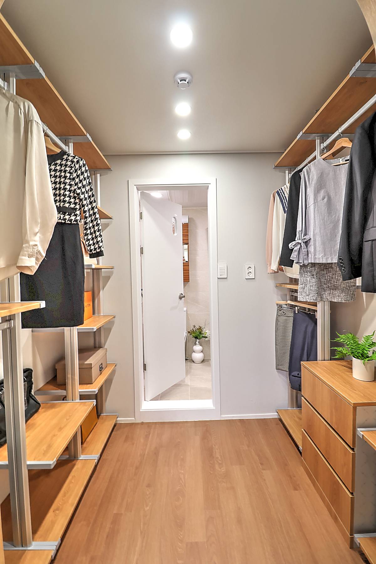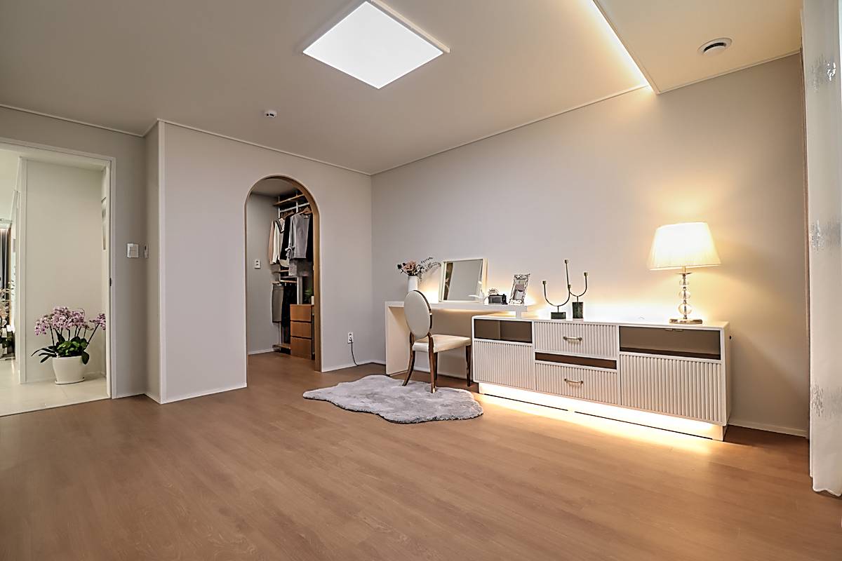 세 개의 방 모두 널찍하게 설계되어 침실로 활용하기 좋습니다. 안방에는 드레스룸이 마련되어 있고, 중간방에는 펜트리룸, 작은방은 발코니와 연결되어 수납 공간으로 활용 가능합니다. 중간방까지 시스템 냉방장치가 설치되어 각 방에서 쾌적하게 생활할 수 있습니다.